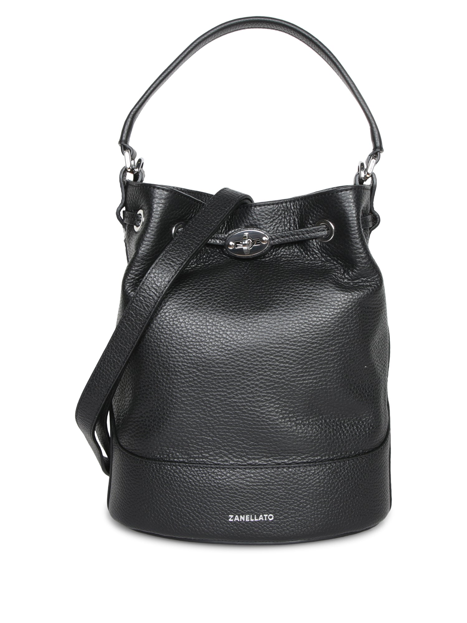 Exclusive Zanellato's Monda Daily S bag, crafted in fine black leather, featuring a refined silhouette and functional details such as a removable shoulder strap and a secure closure.