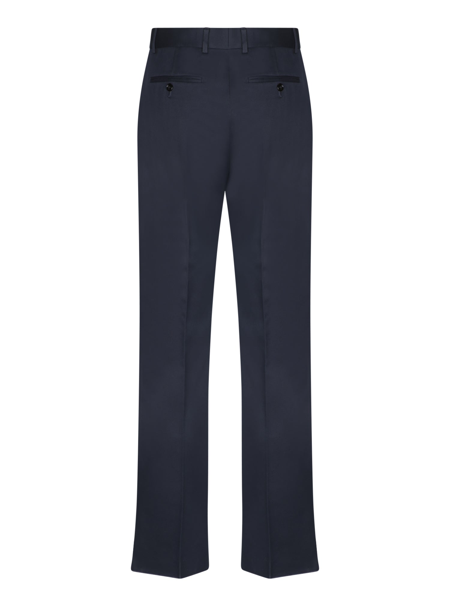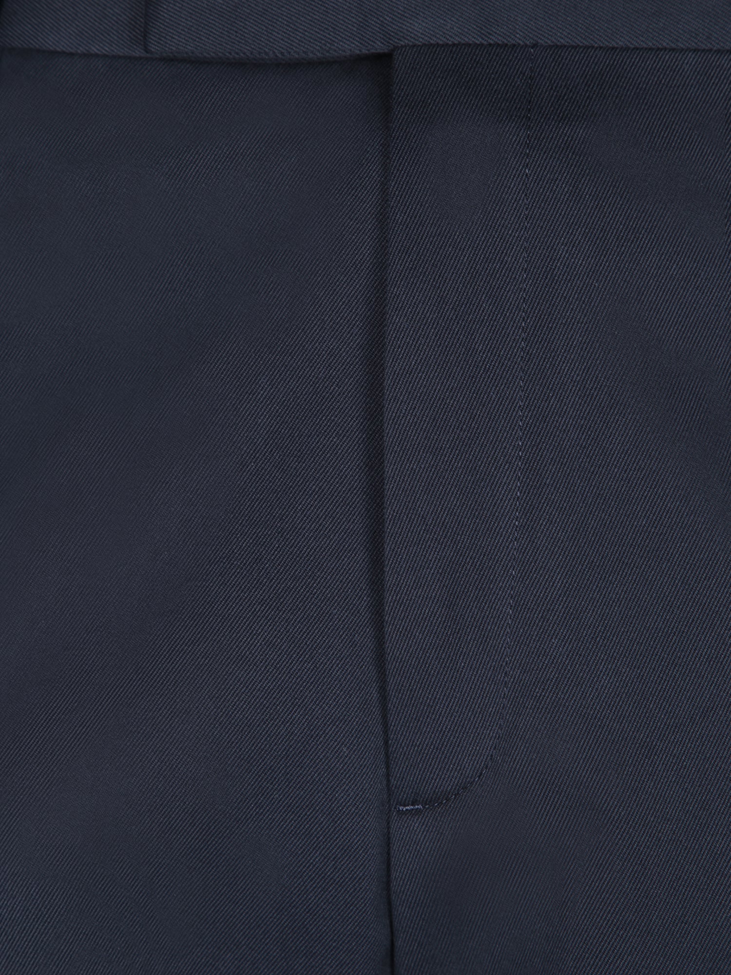 Mid-rise with belt loops. Front zip and button closure. Two side pockets.
