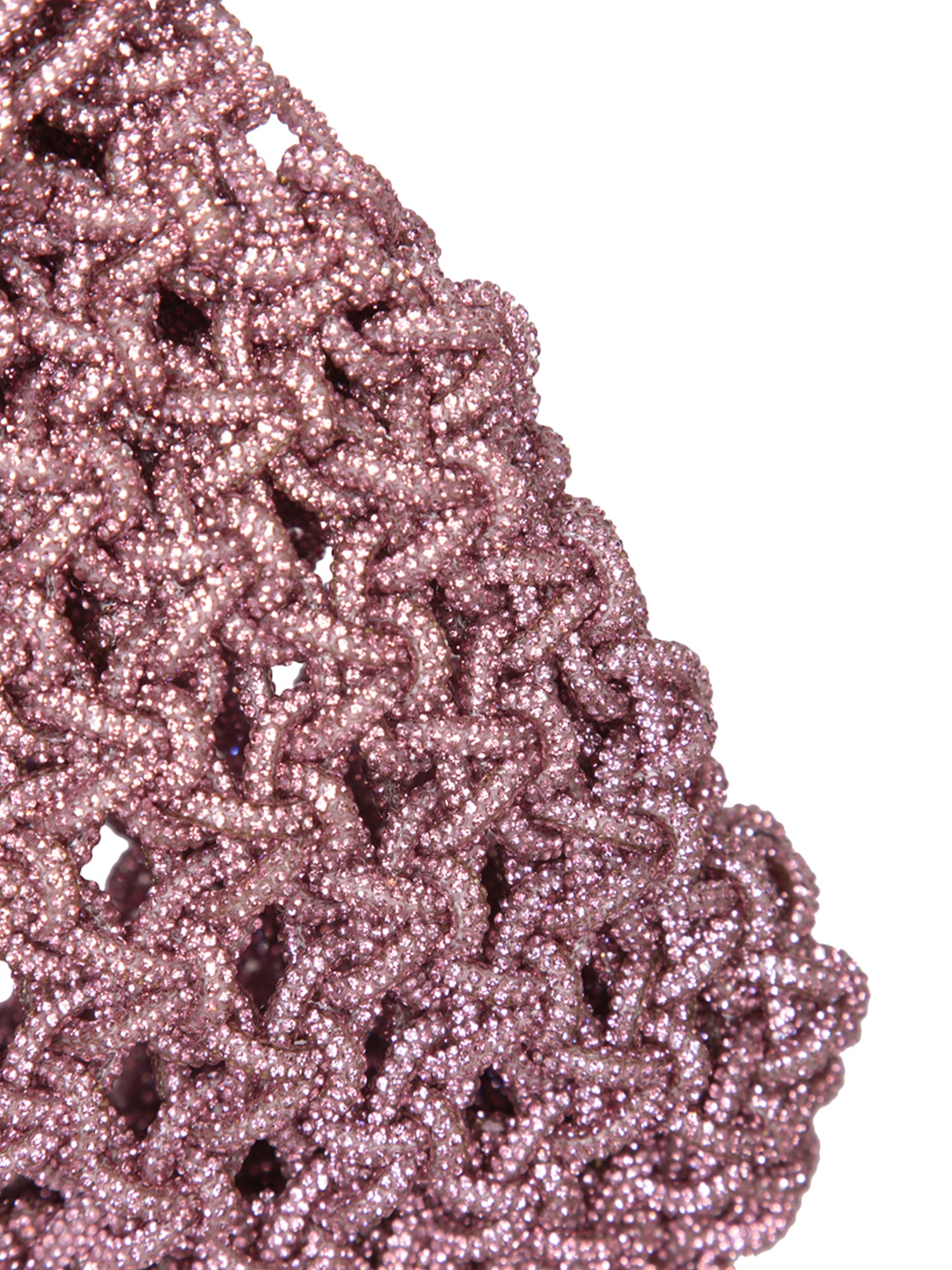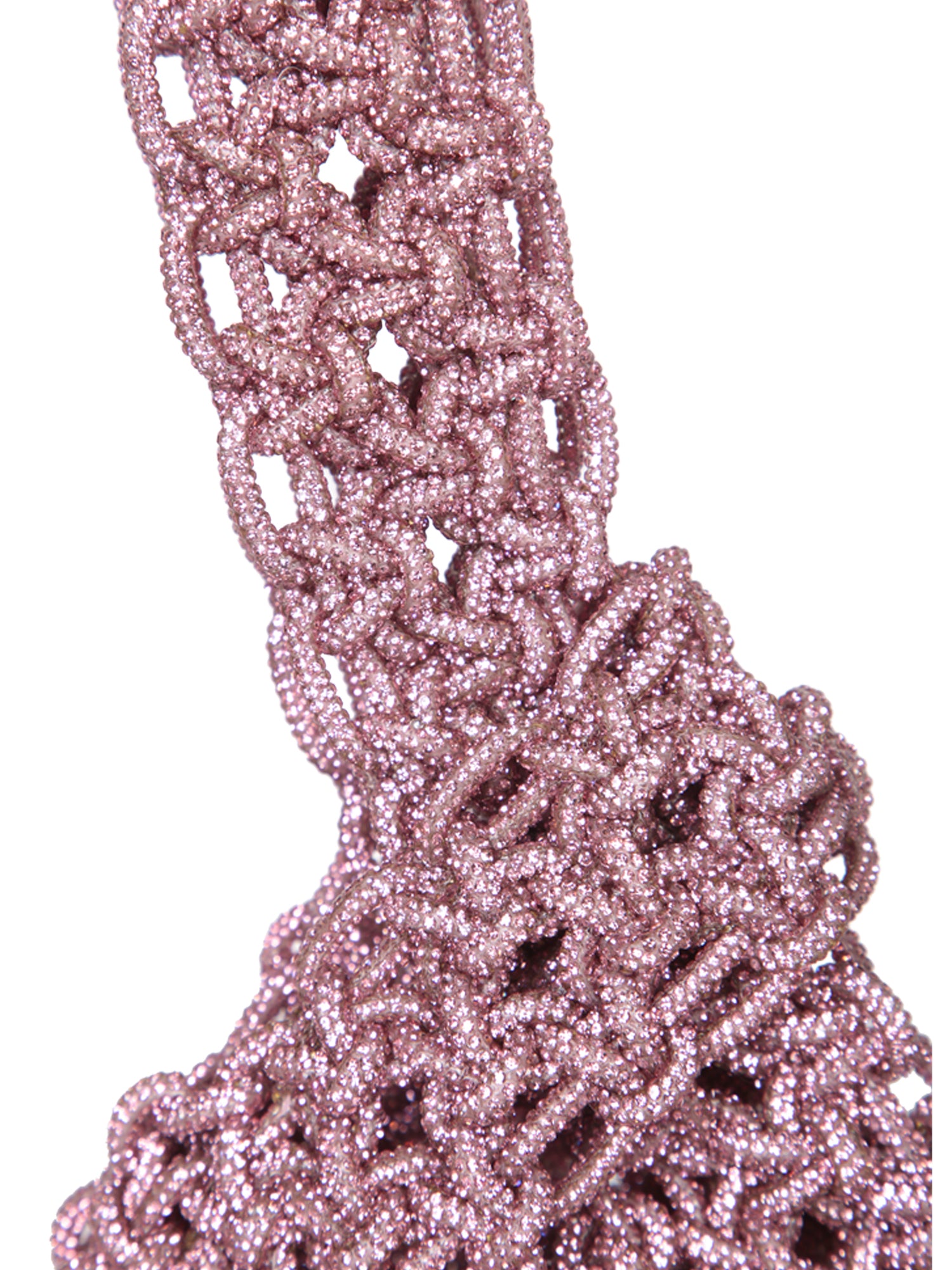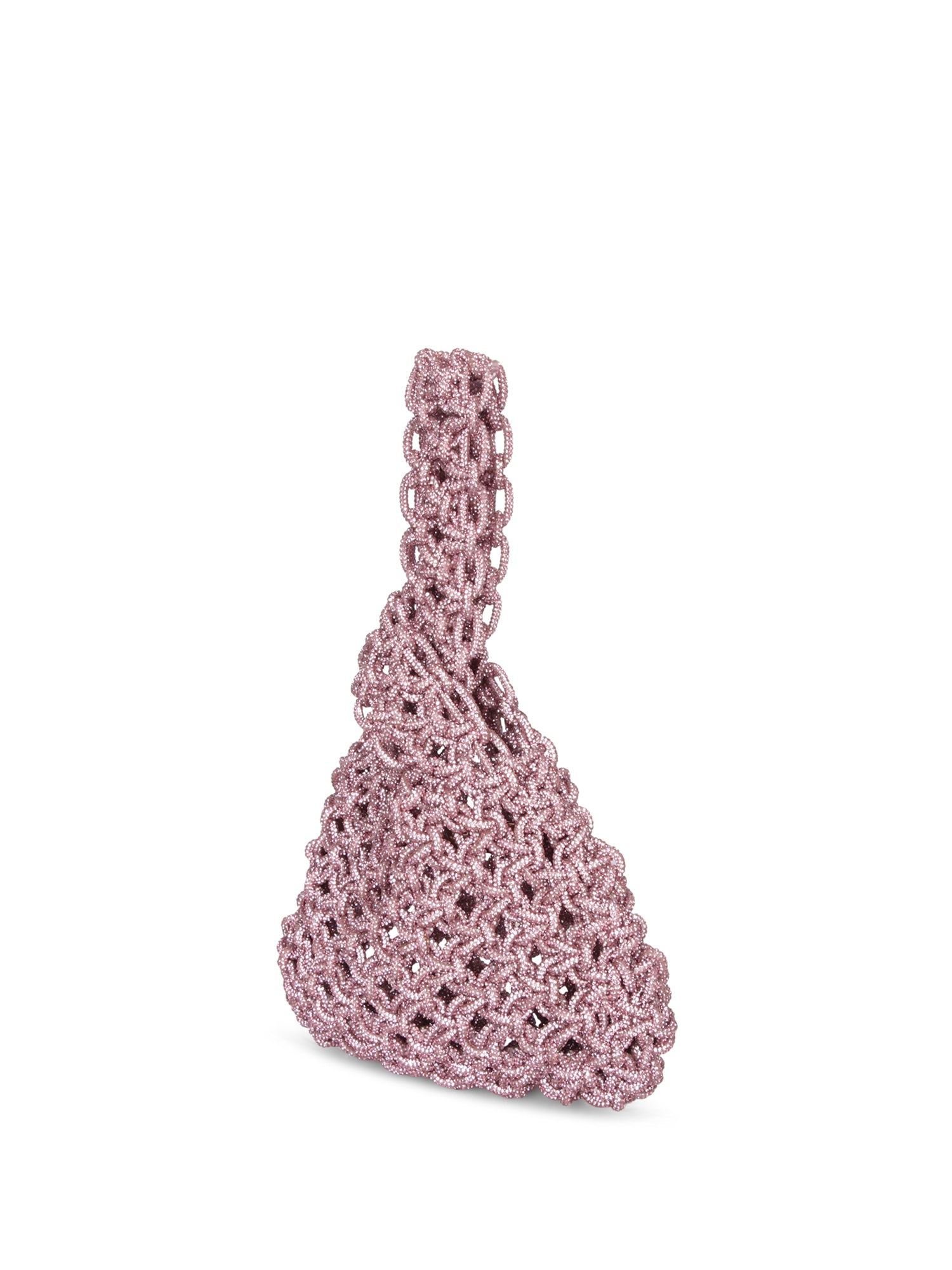 Handbag in metallic woven fabric. Drawstring closure. Single strap.