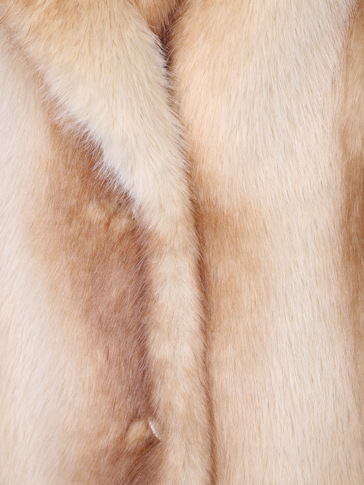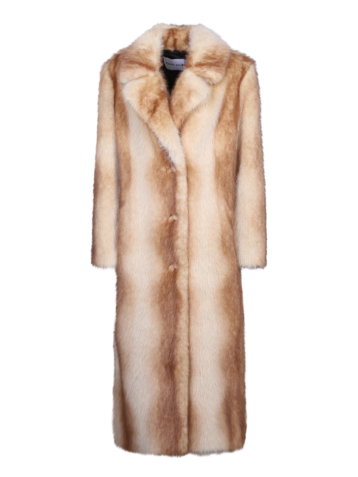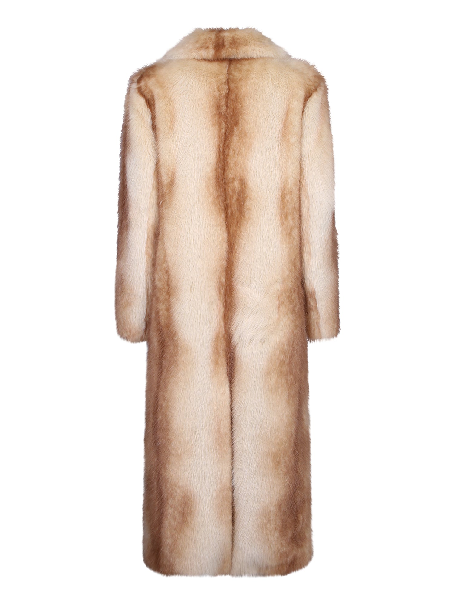 Long faux fur coat. Wide lapel collar. Hidden hook closure.