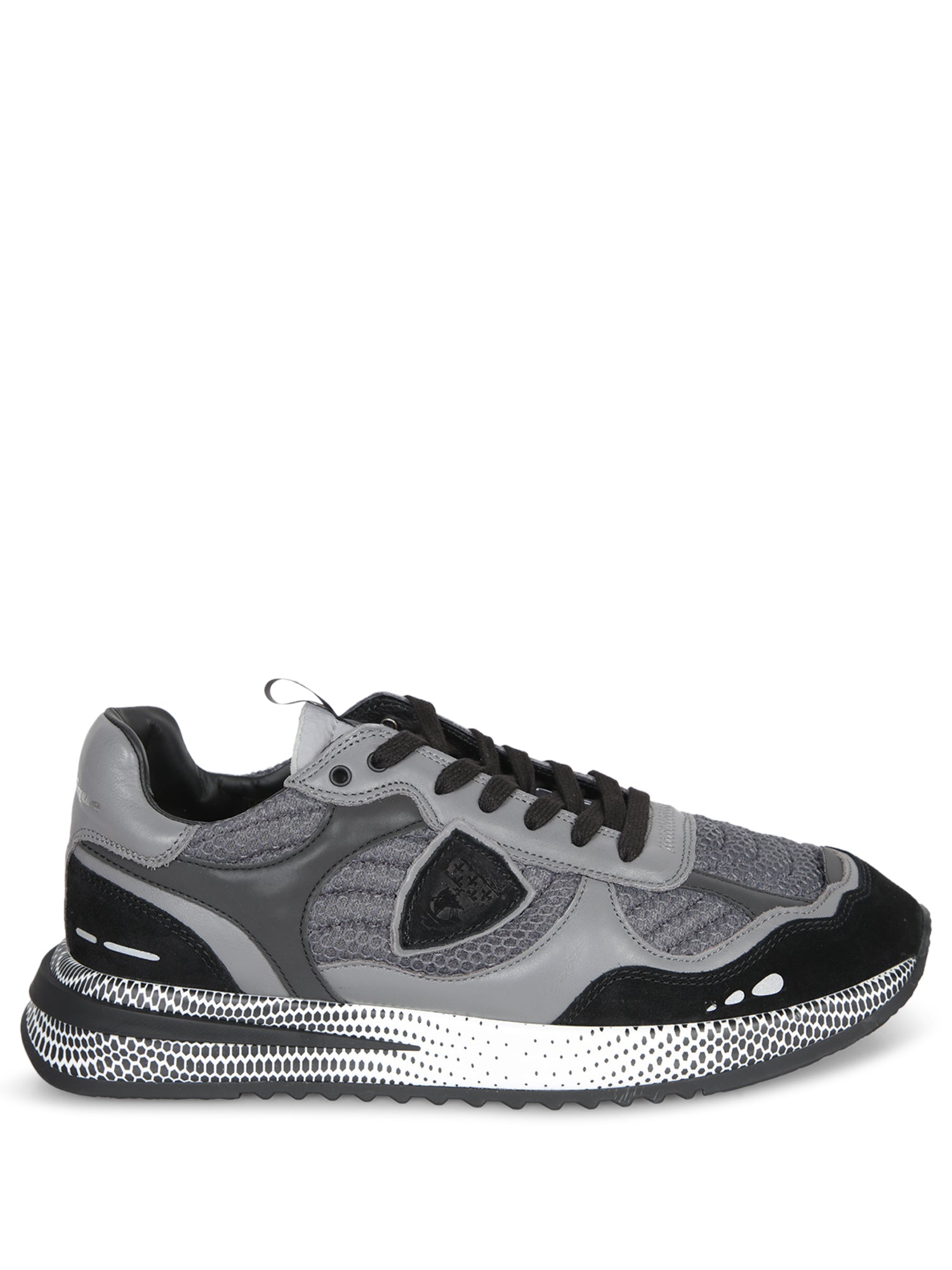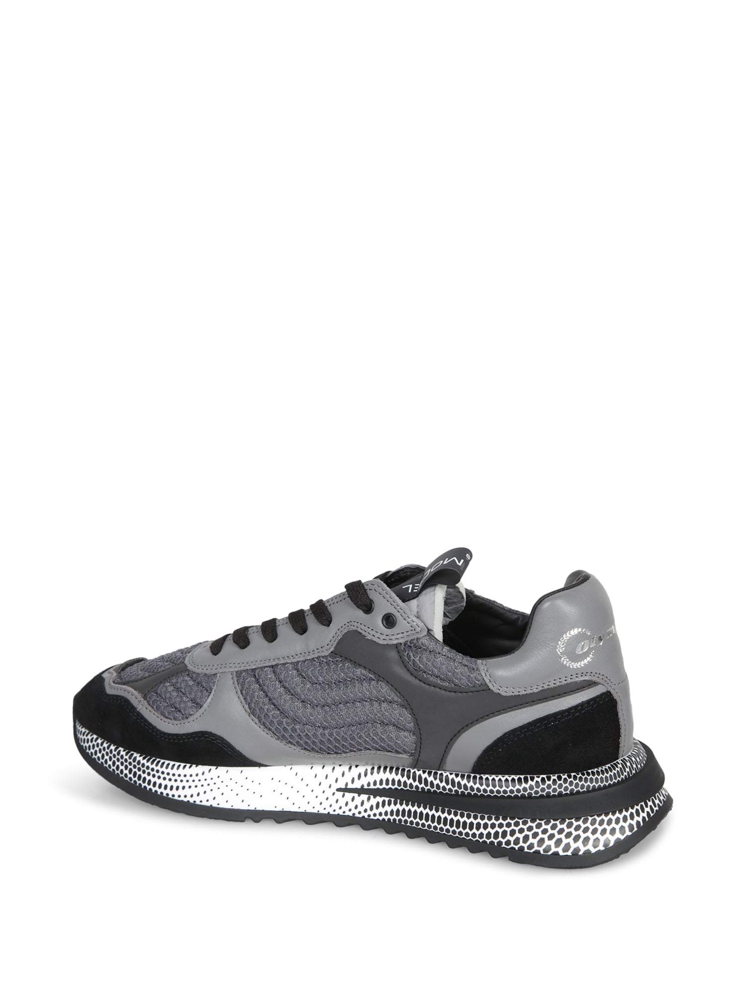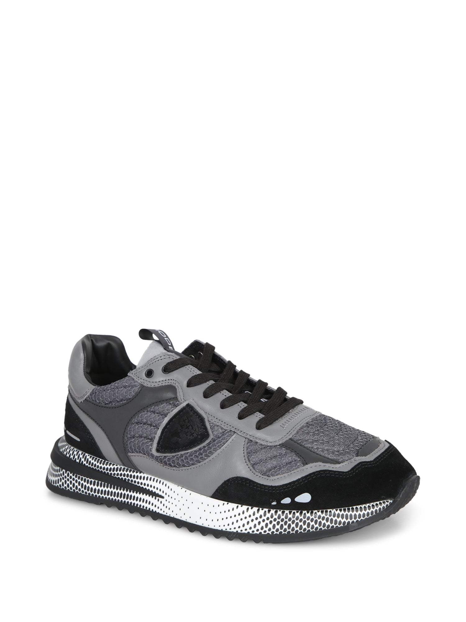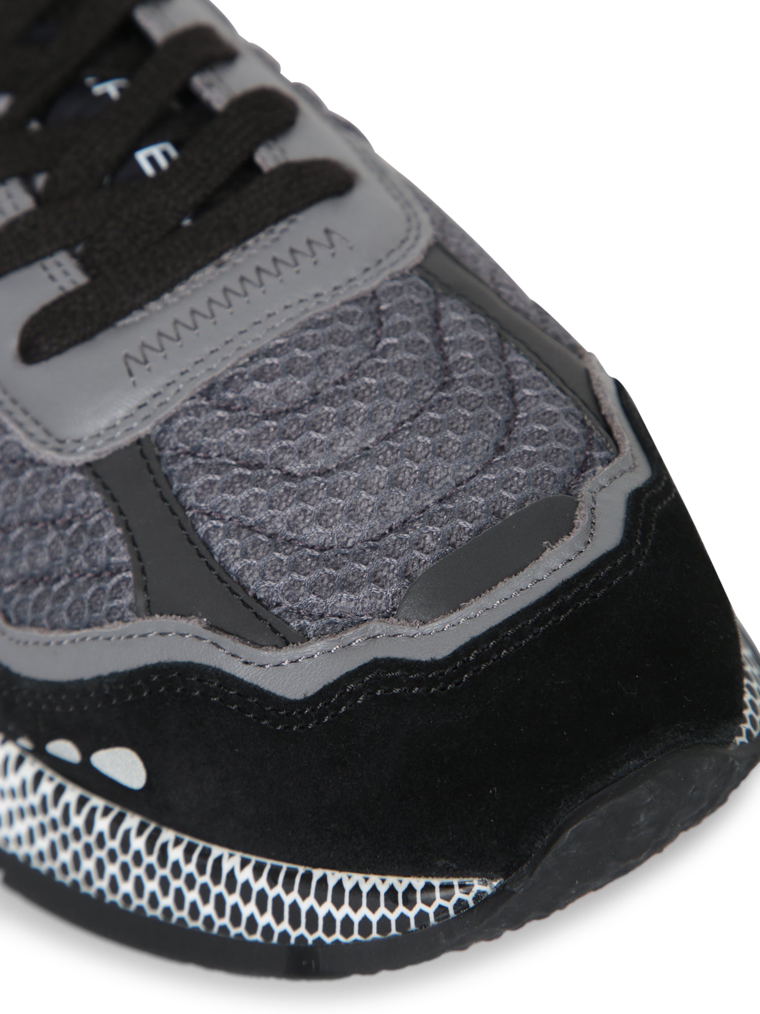 Sneakers made of leather and technical fabric. Design features suede leather details. Molded rubber sole with reflective inserts.