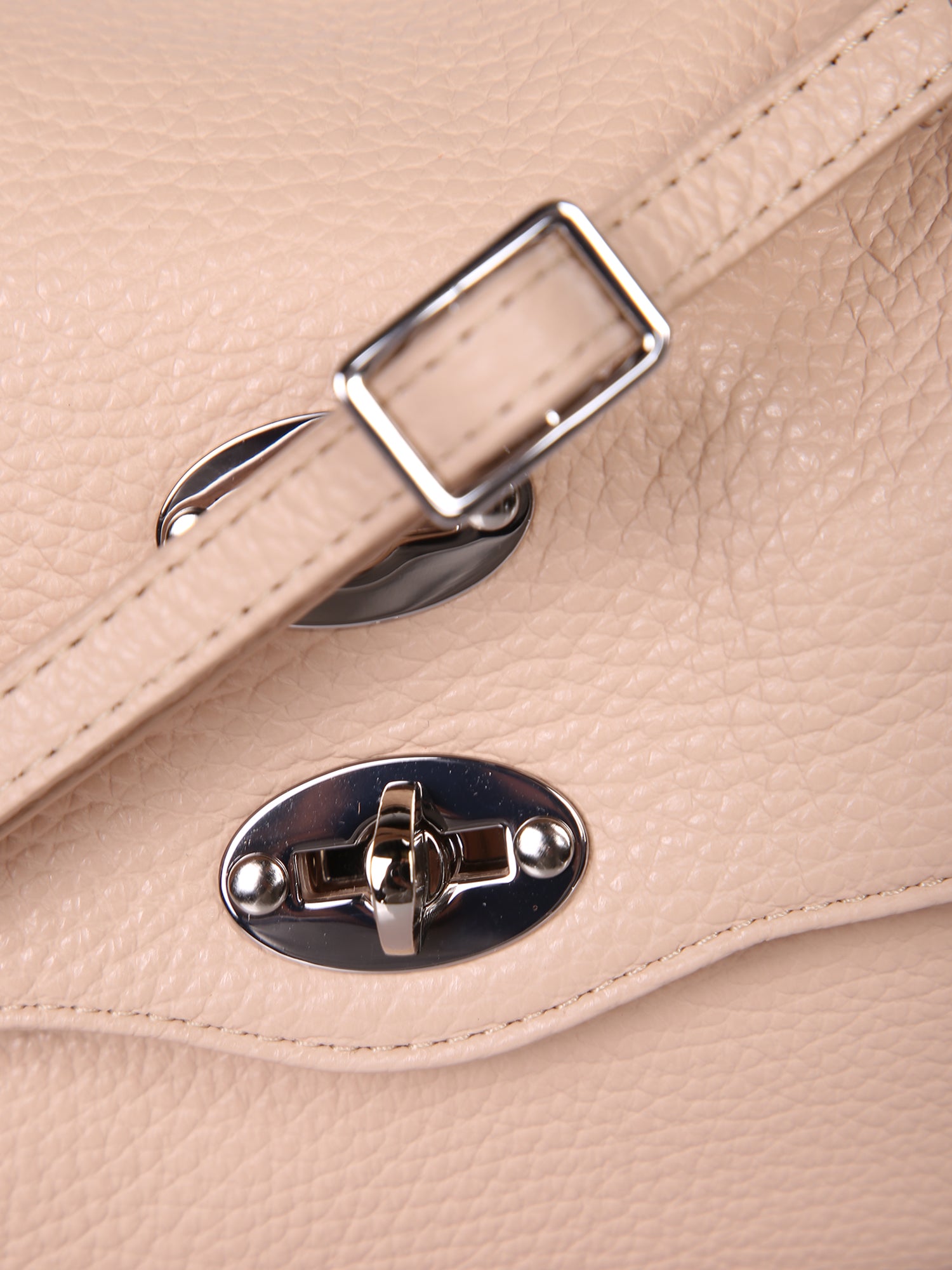 Hammered leather. Flip-lock closure. Adjustable shoulder strap.