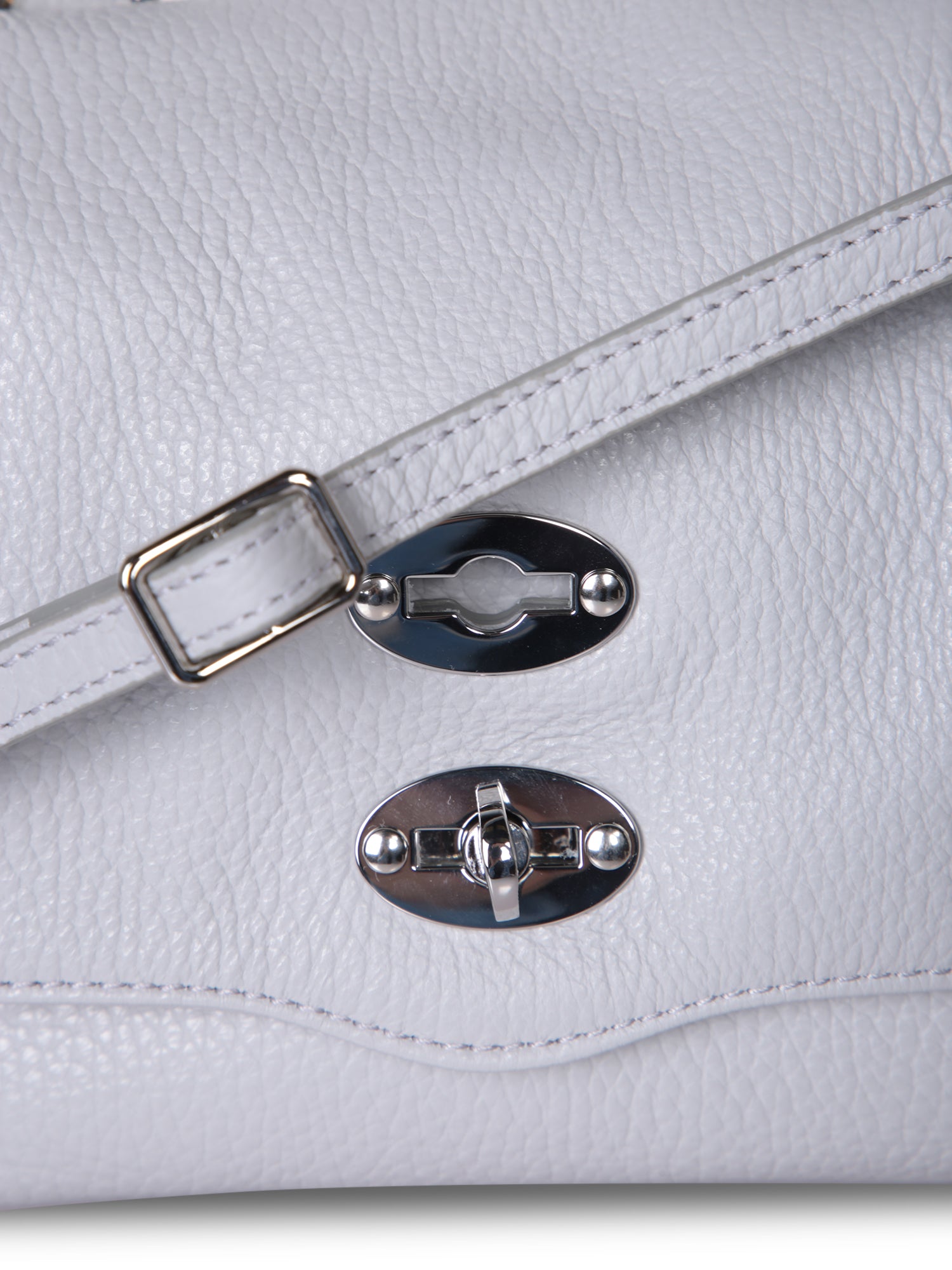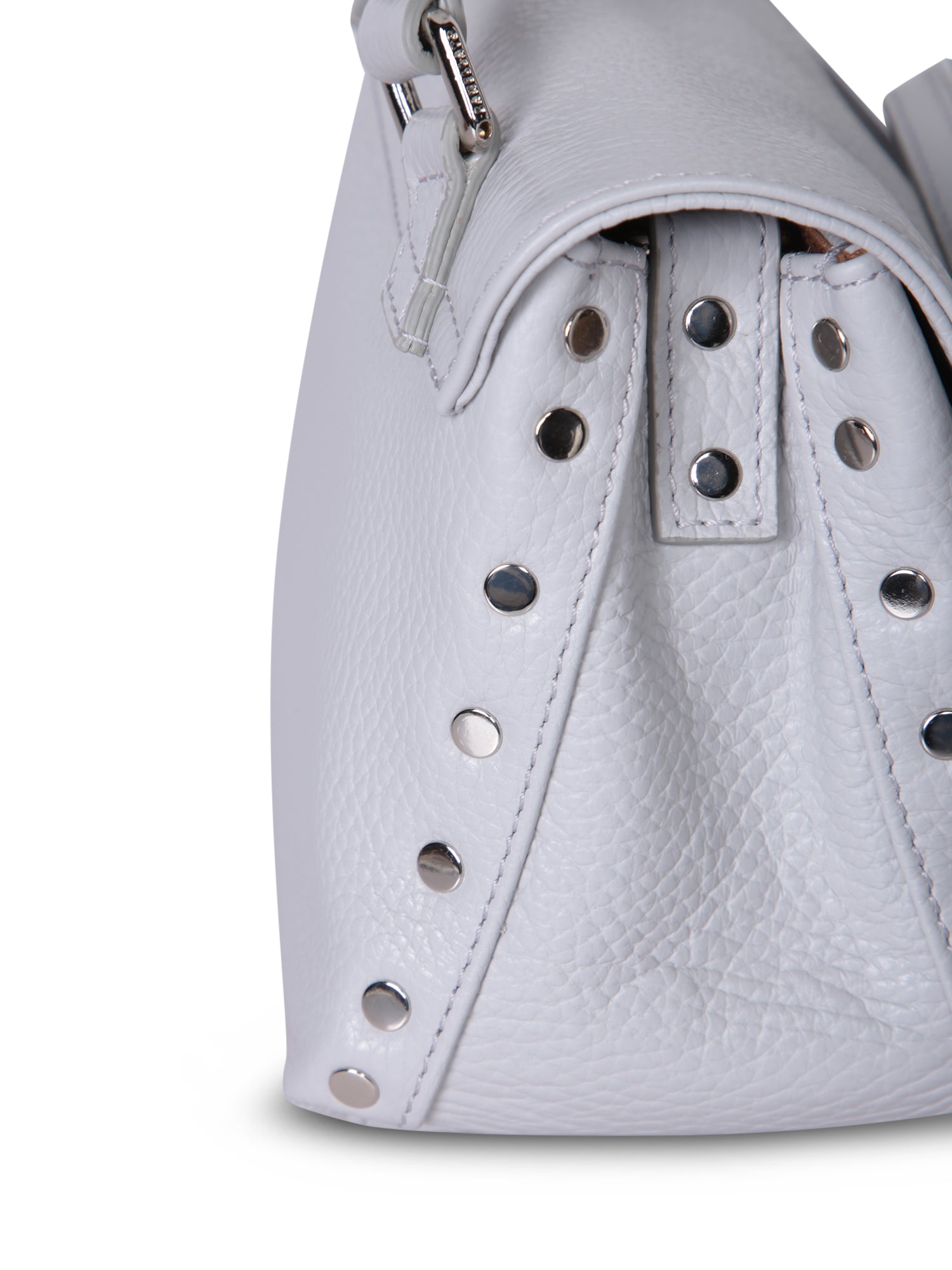 Single top handle. Front fastening. Adjustable detachable shoulder strap. Size: 19 x 14 x 10 cm