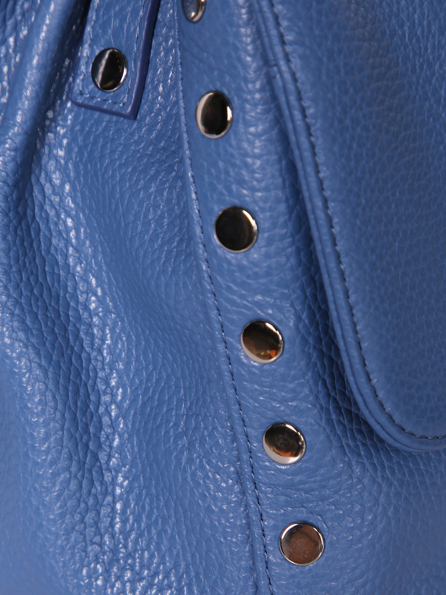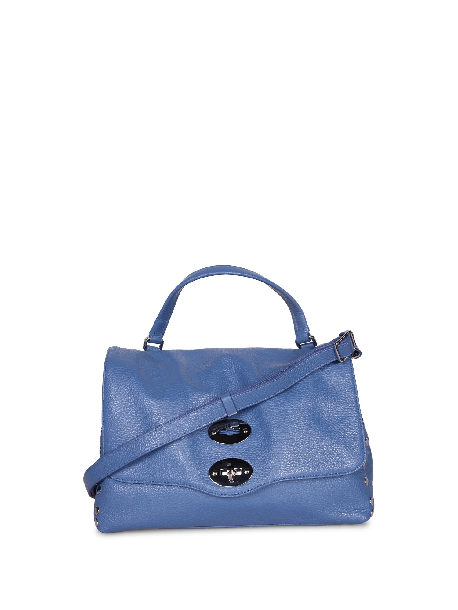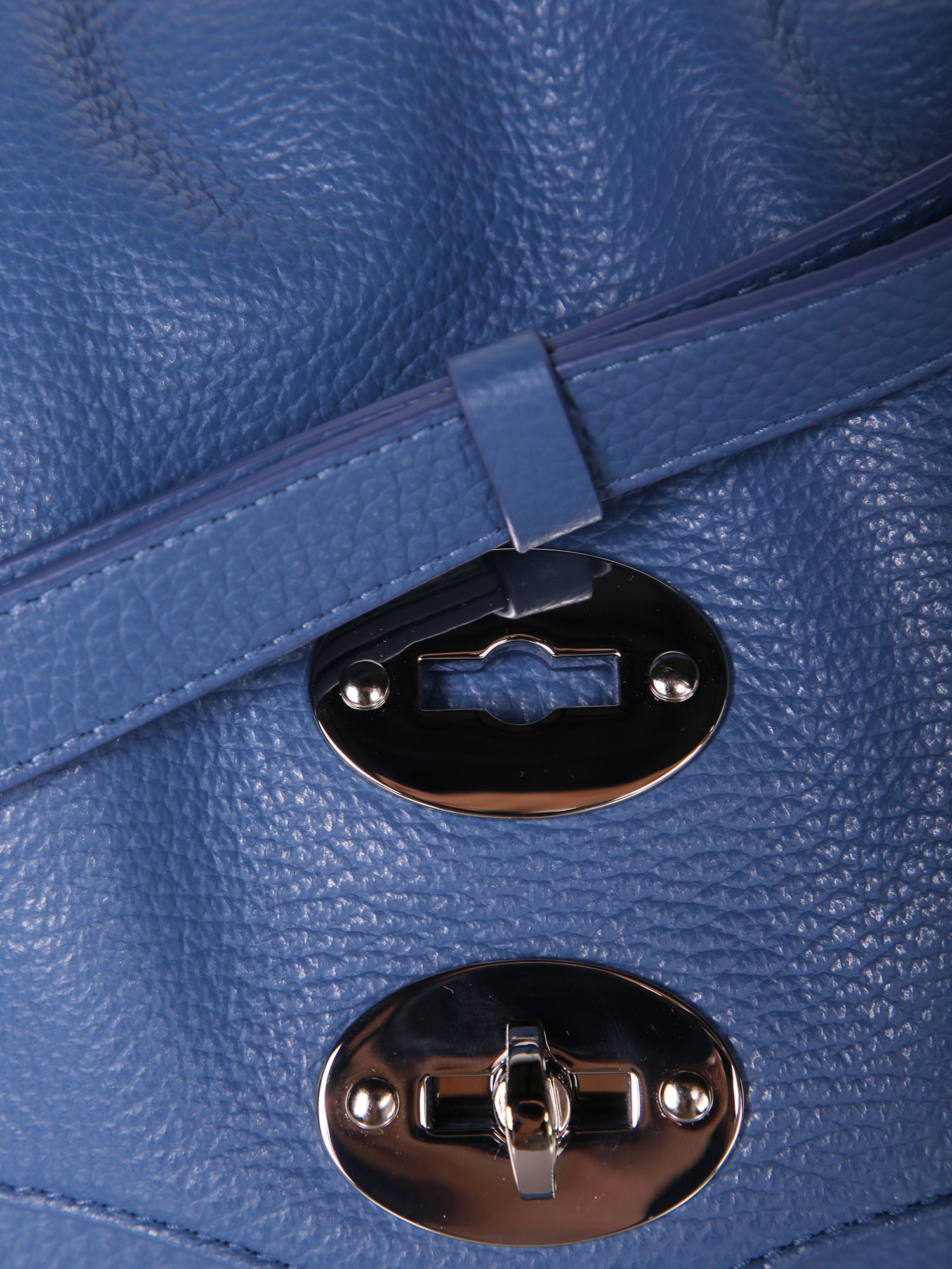 High-quality leather bag. Front flap design with metallic accessories. Includes an adjustable and removable shoulder strap.