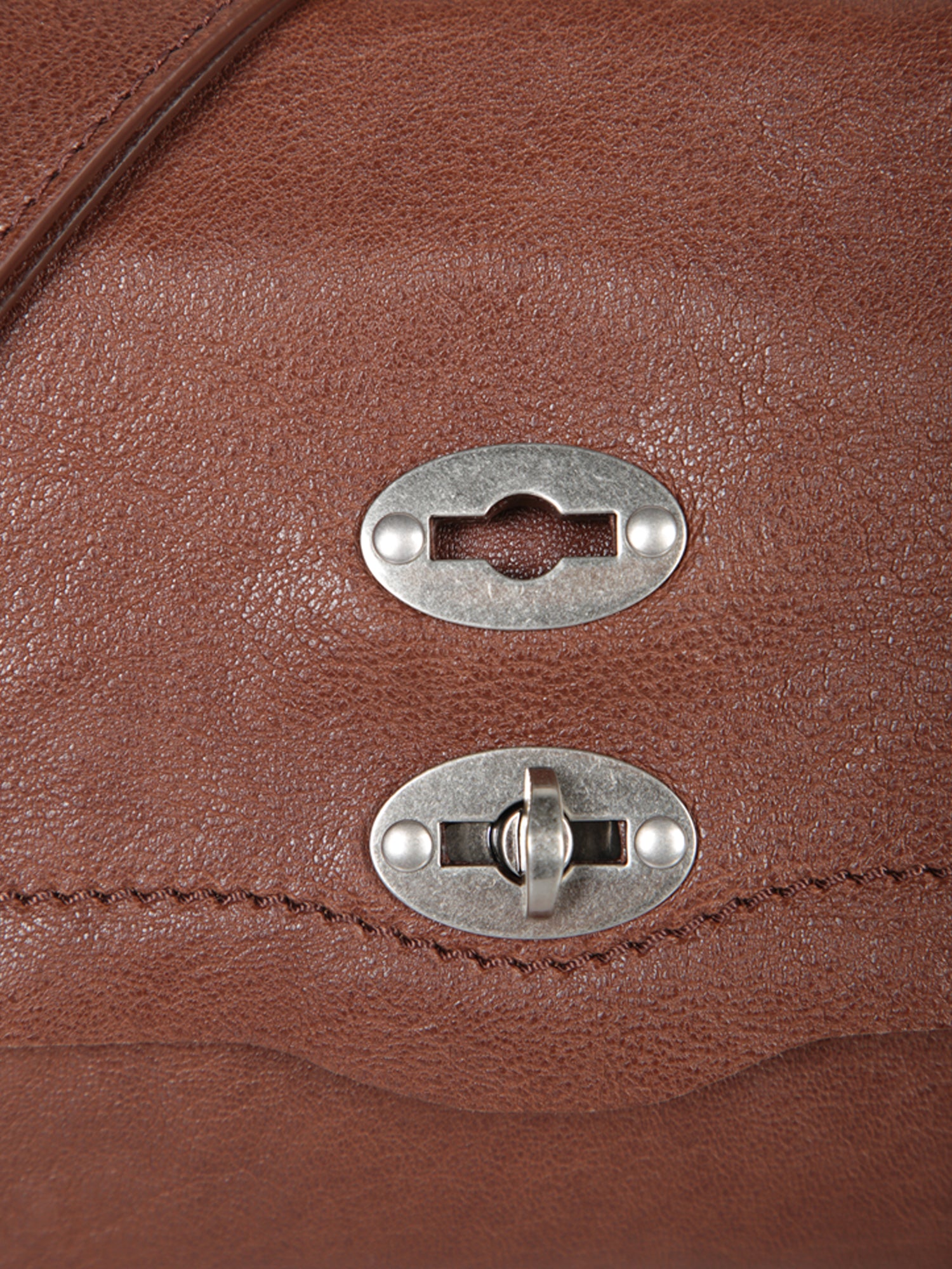 Crafted from high-quality leather. Flap closure with metal lock. Top handle and removable shoulder strap.