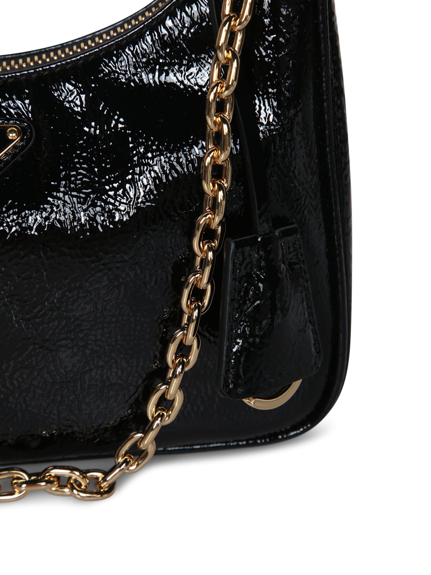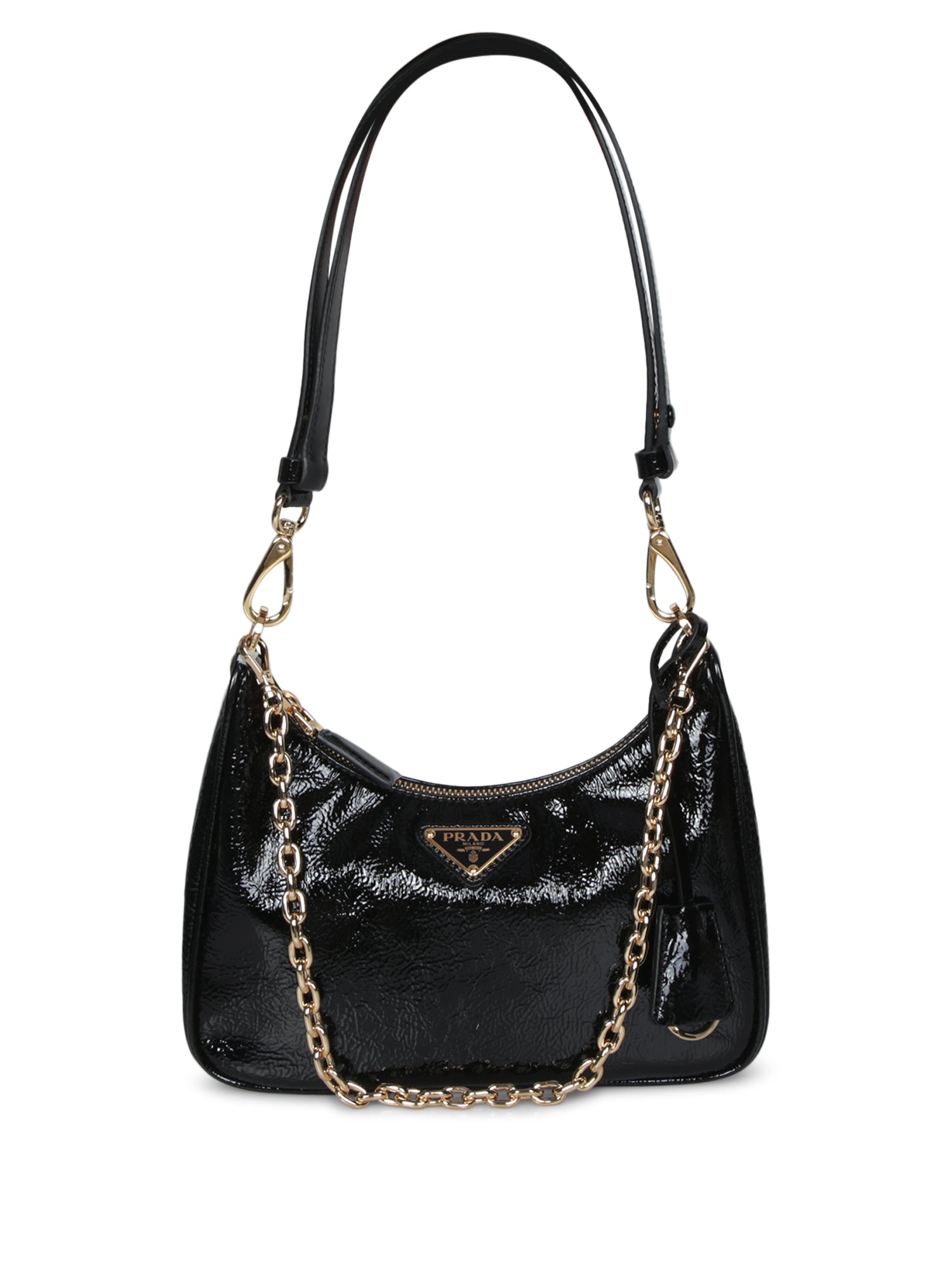 Rediscover timeless elegance with Prada's Re-Edition Naplak bag, finished in glossy Naplak with iconic golden chain details for a touch of understated luxury.