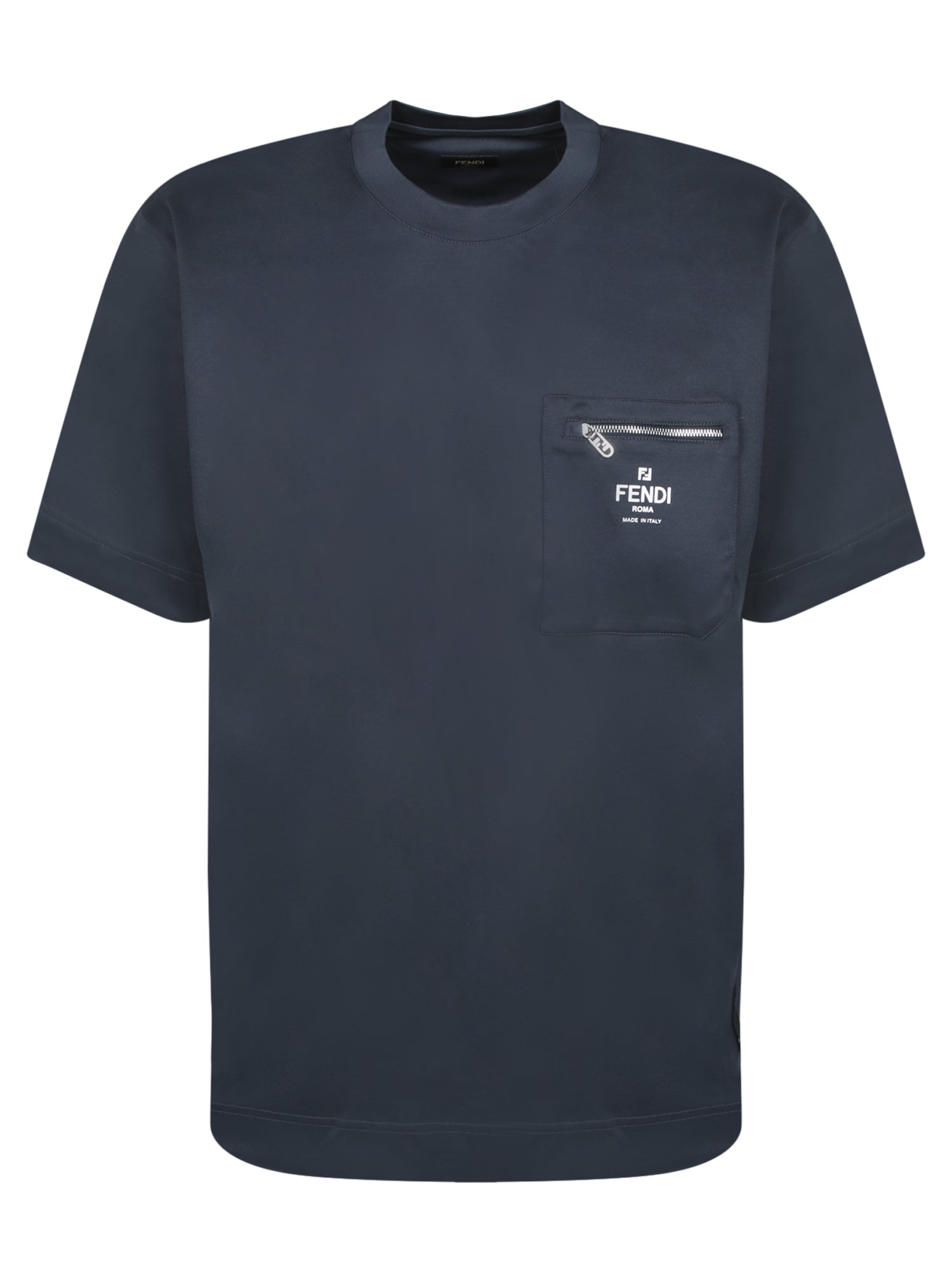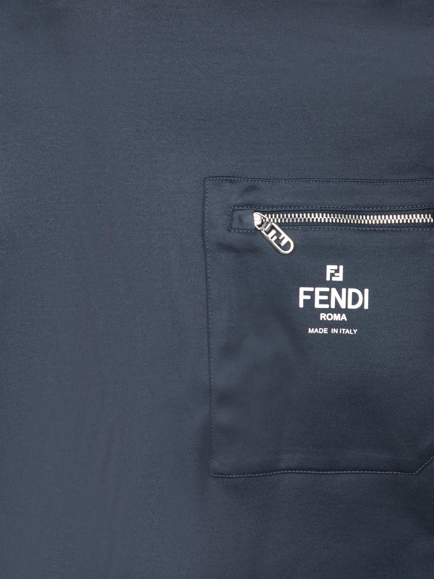 Navy blue color. Chest pocket with zipper. FENDI logo on the pocket.