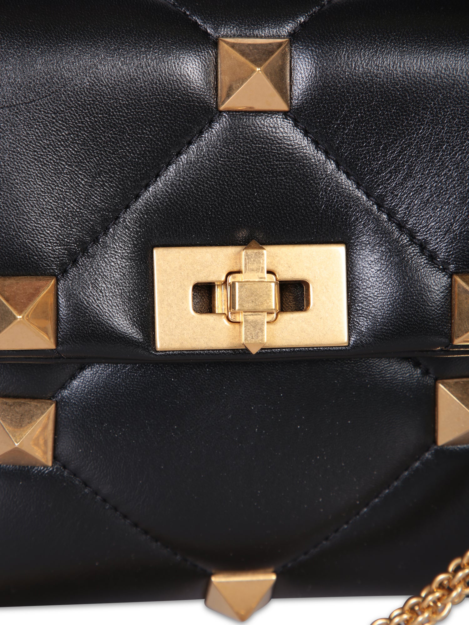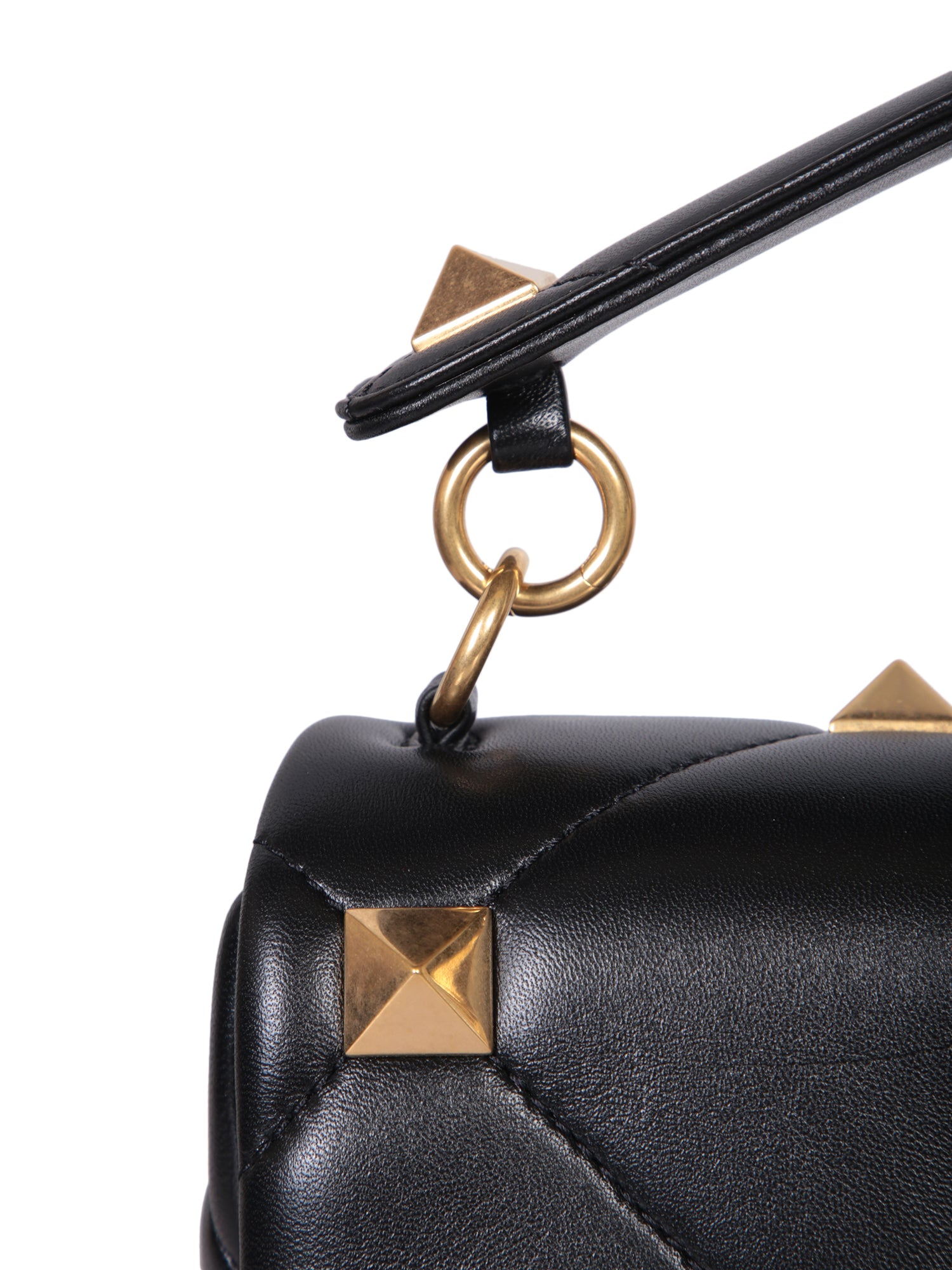 Patch studs. Leather handle. Sliding chain shoulder strap. Size: 30 x 20 x 12 cm