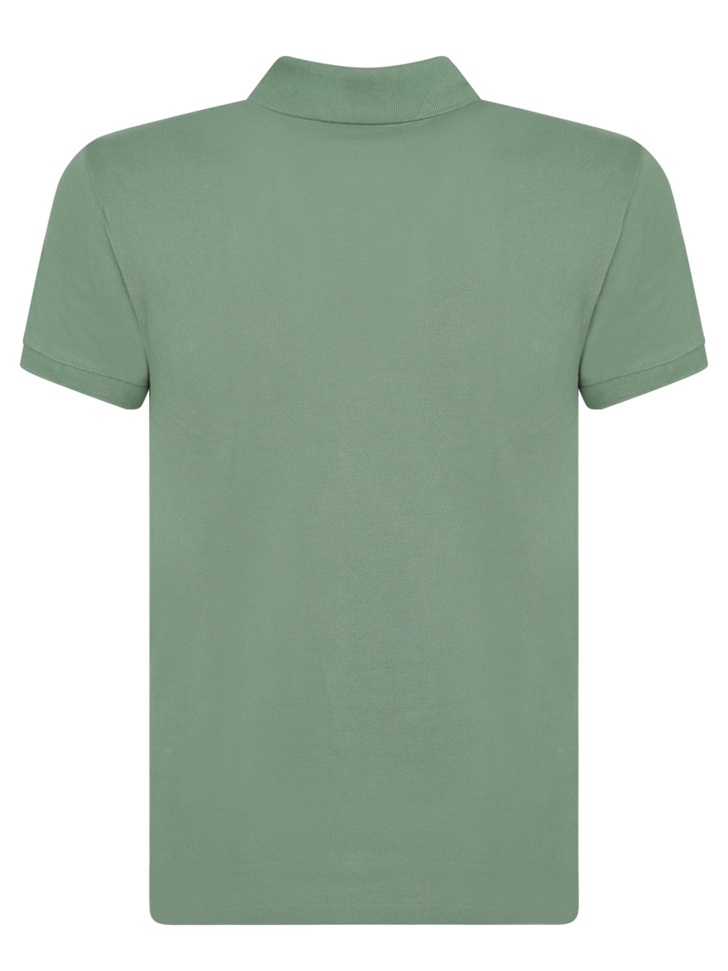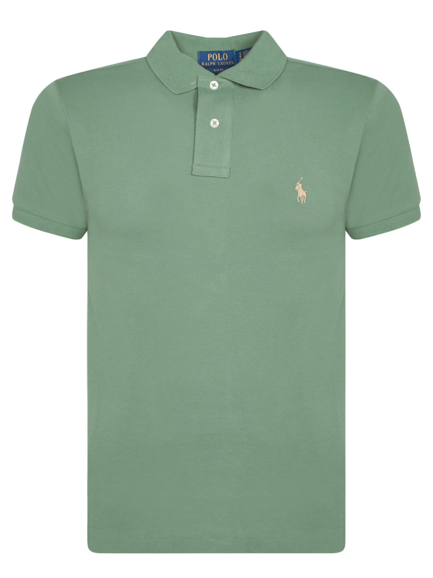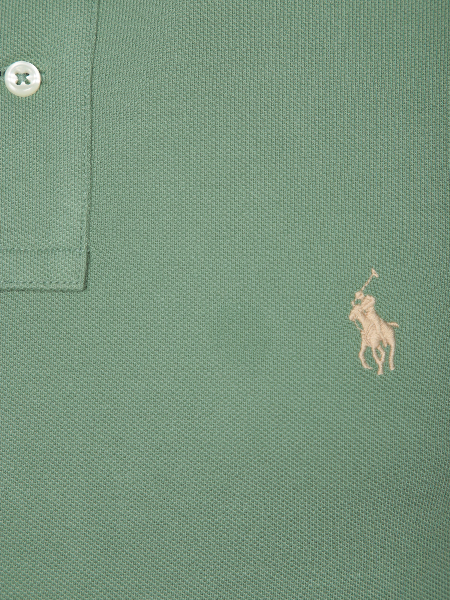 Short sleeves, polo collar with two-button placket, embroidered logo on the chest.