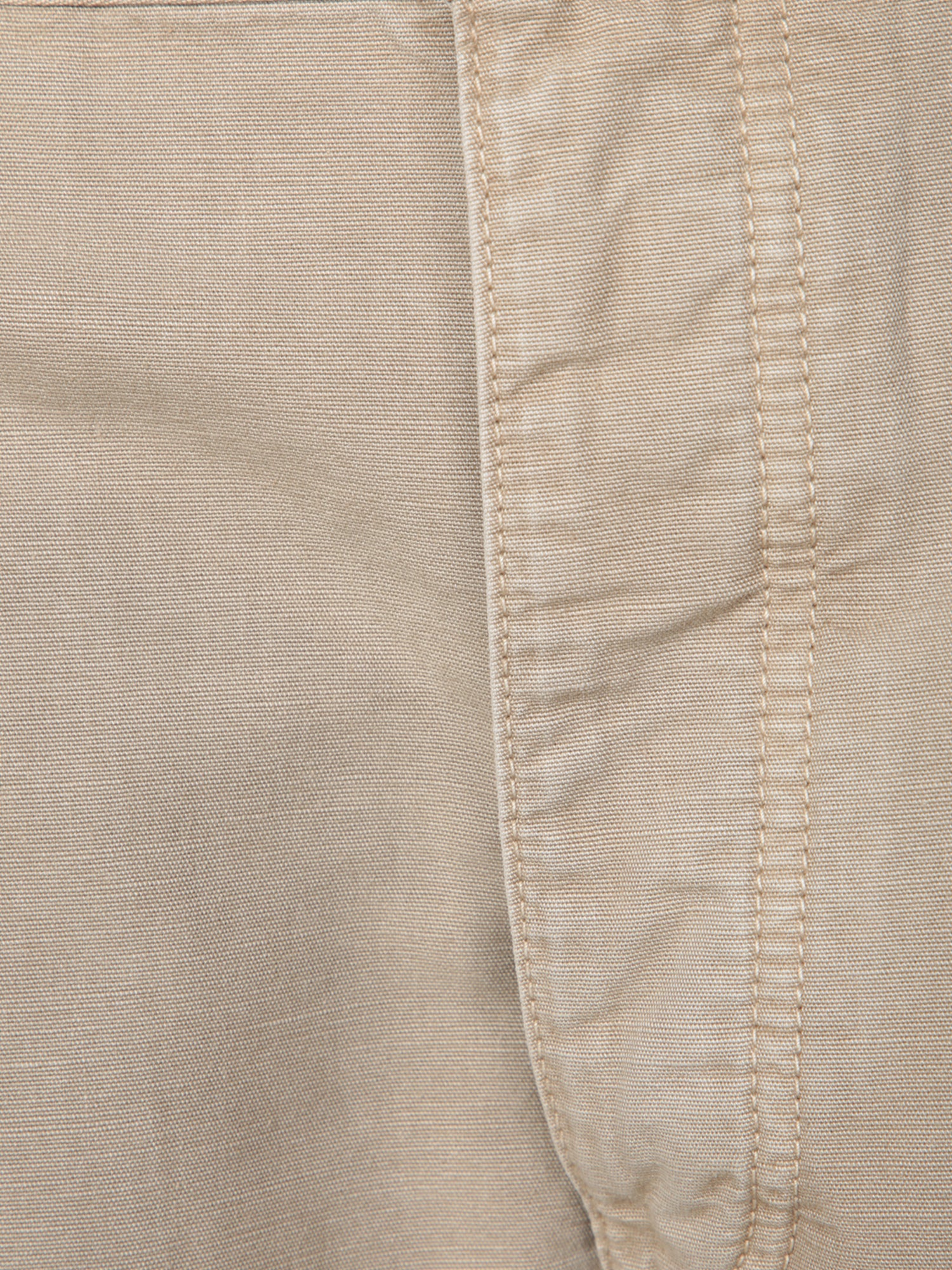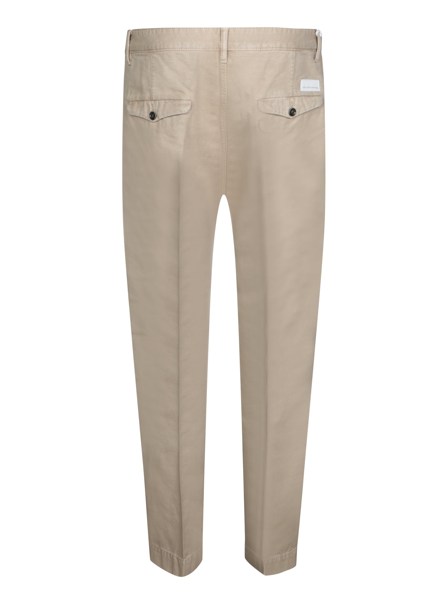 Sand-colored cotton trousers. Straight cut. Zip and button closure.