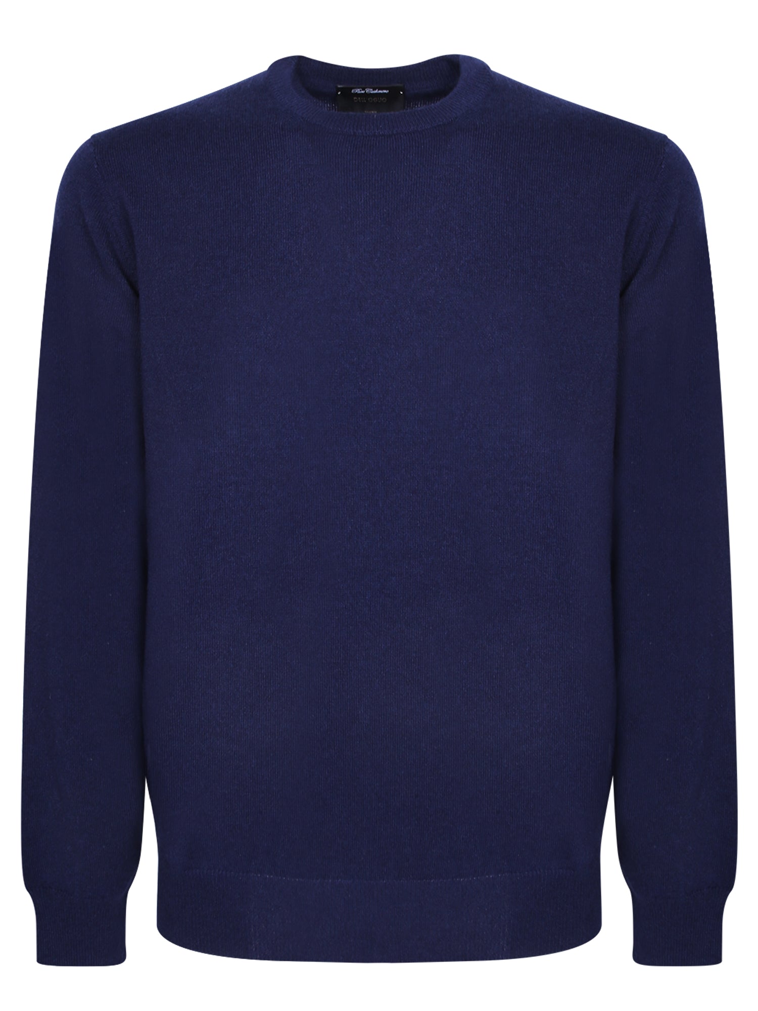 Crew neck cashmere sweater. Ribbed trims. Solid color.