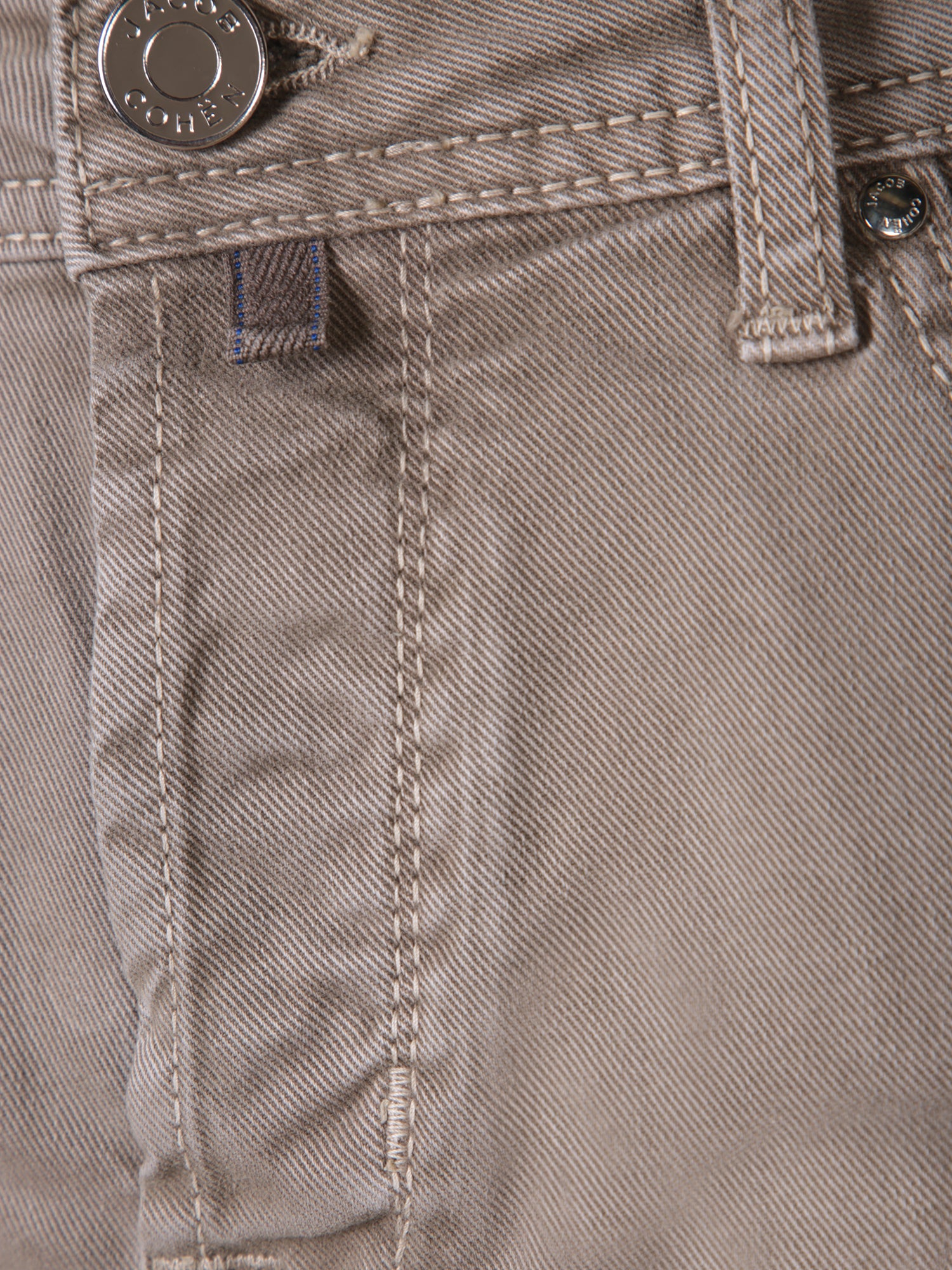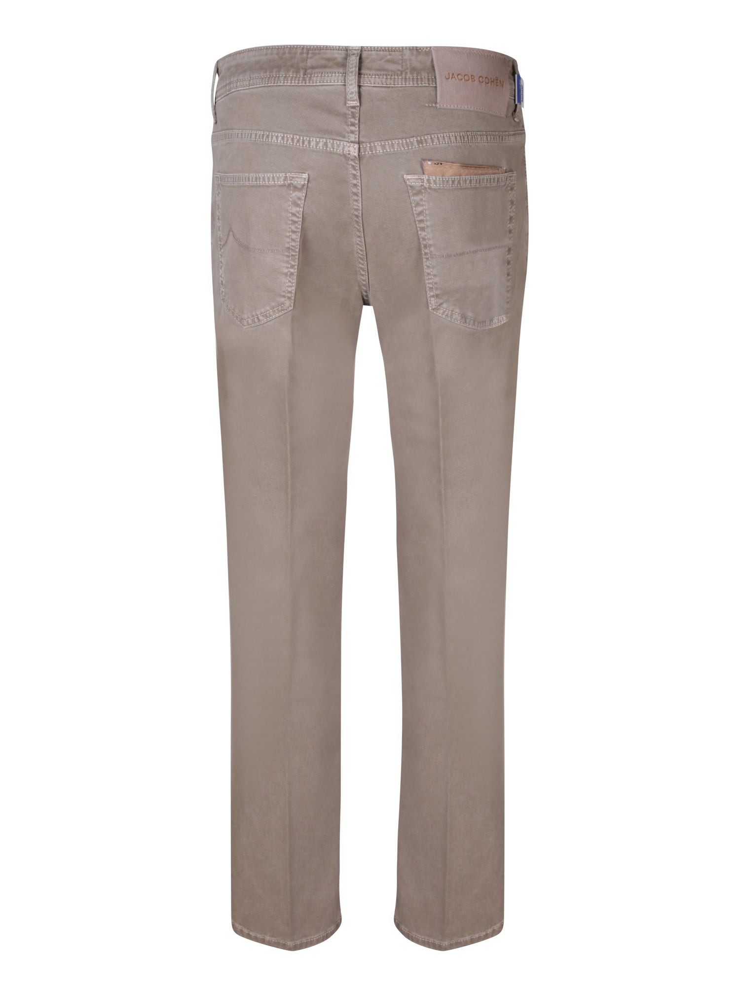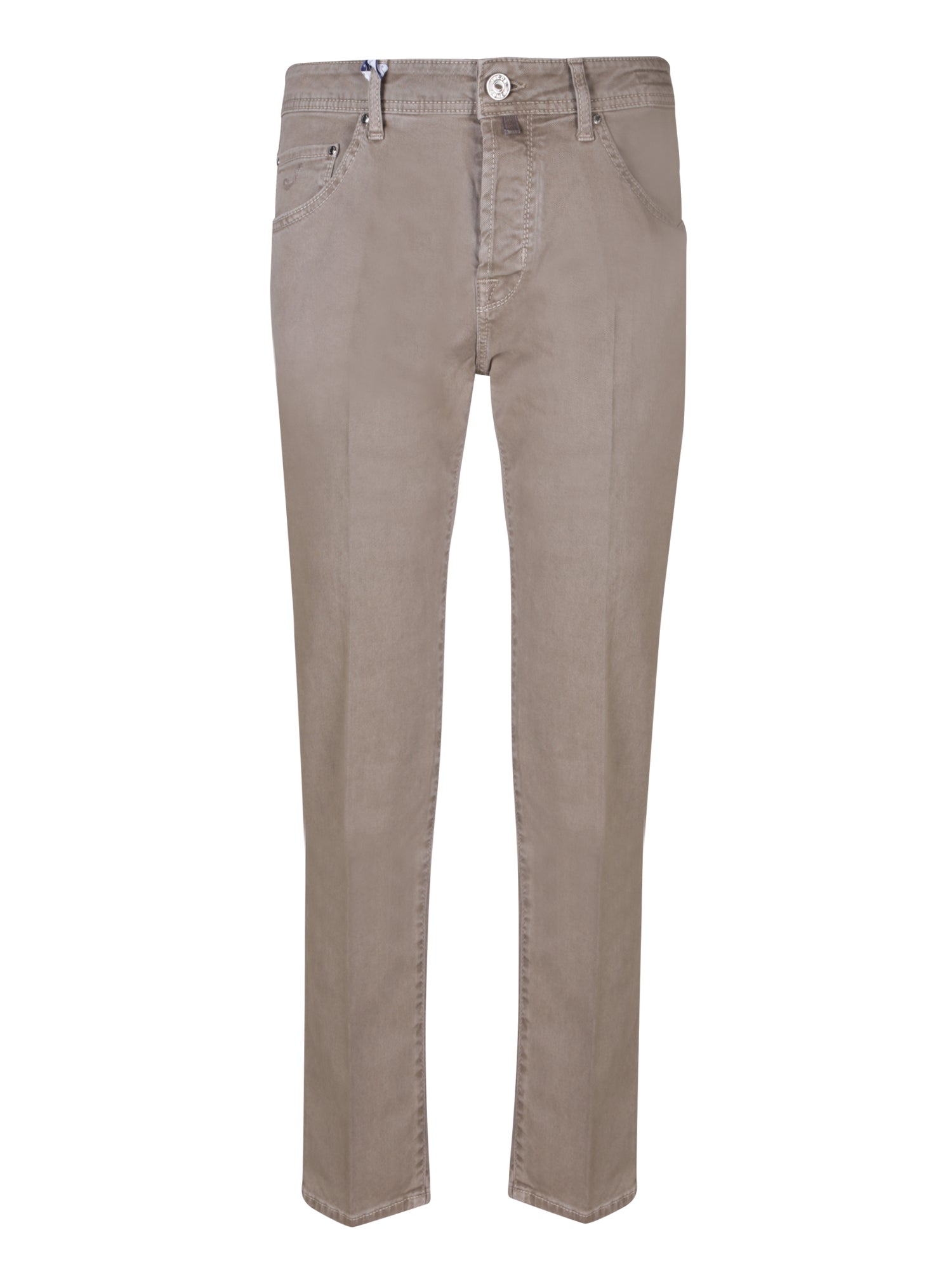 Cotton gabardine trousers with zip and button closure, front and back pockets.