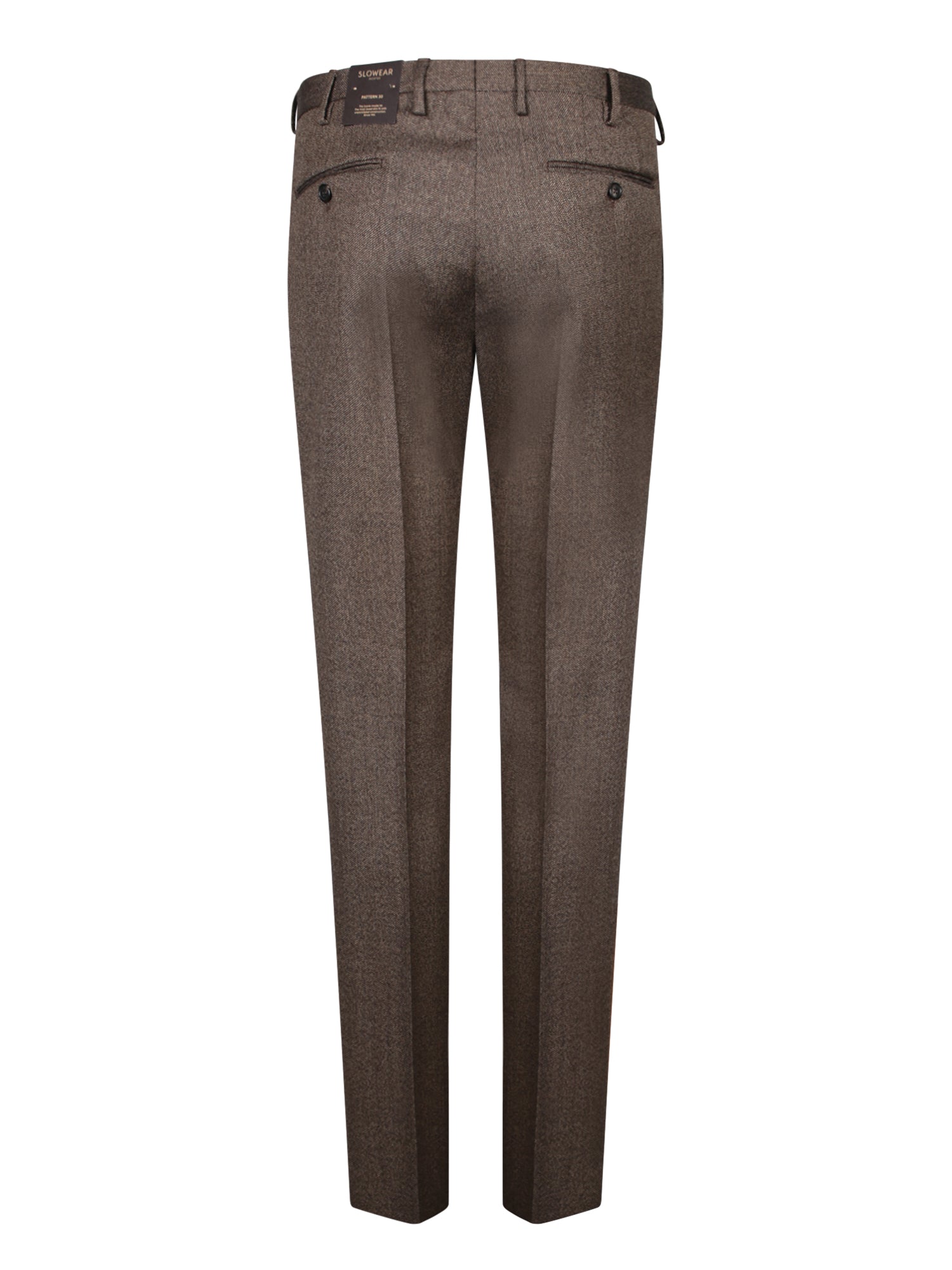 Slim fit cut. Tweed fabric. Belt loops.