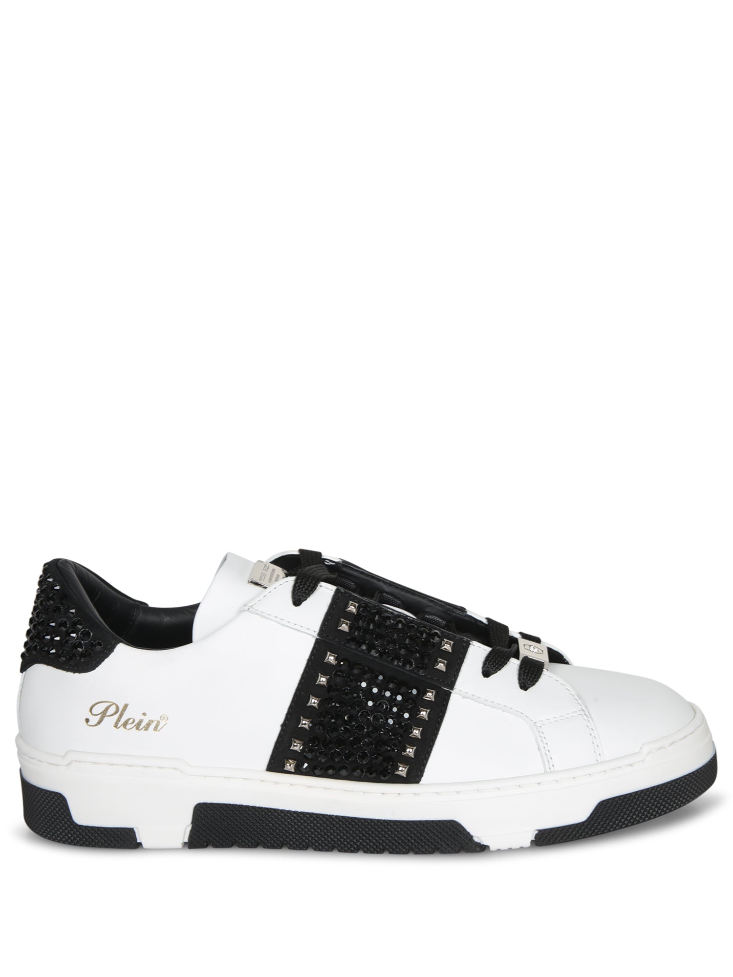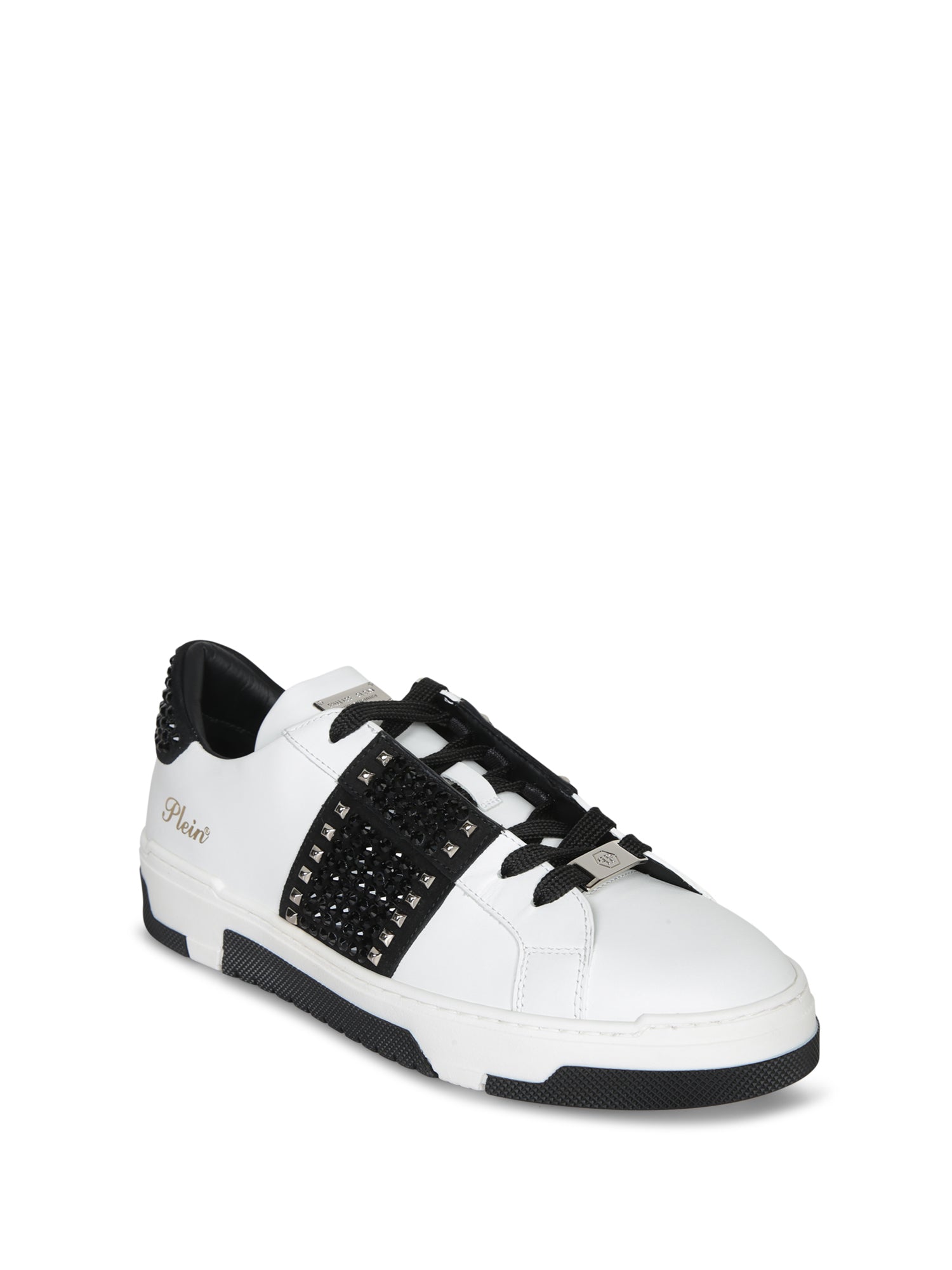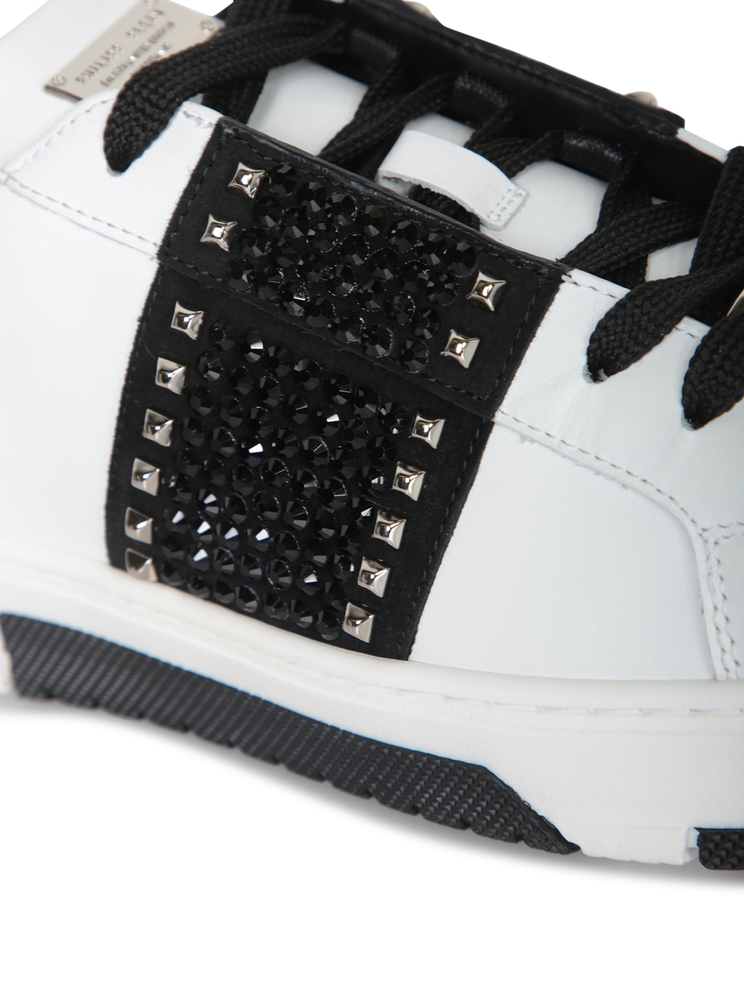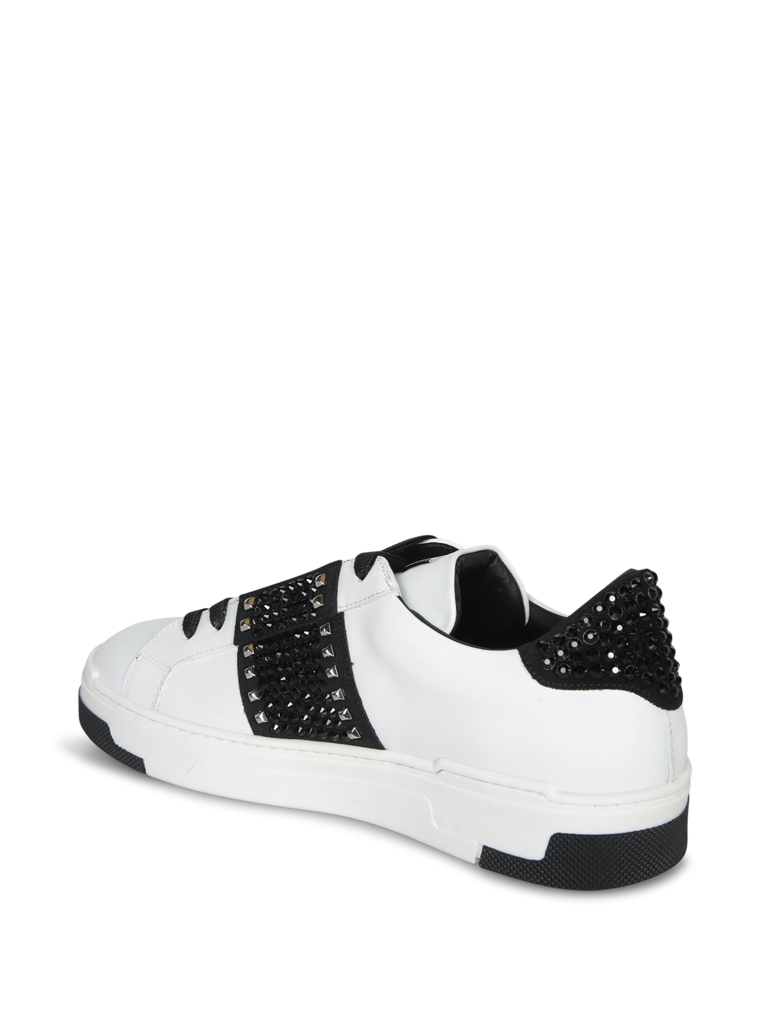Low-top sneakers with black stones detailing. Rubber sole, traditional lace-up closure.