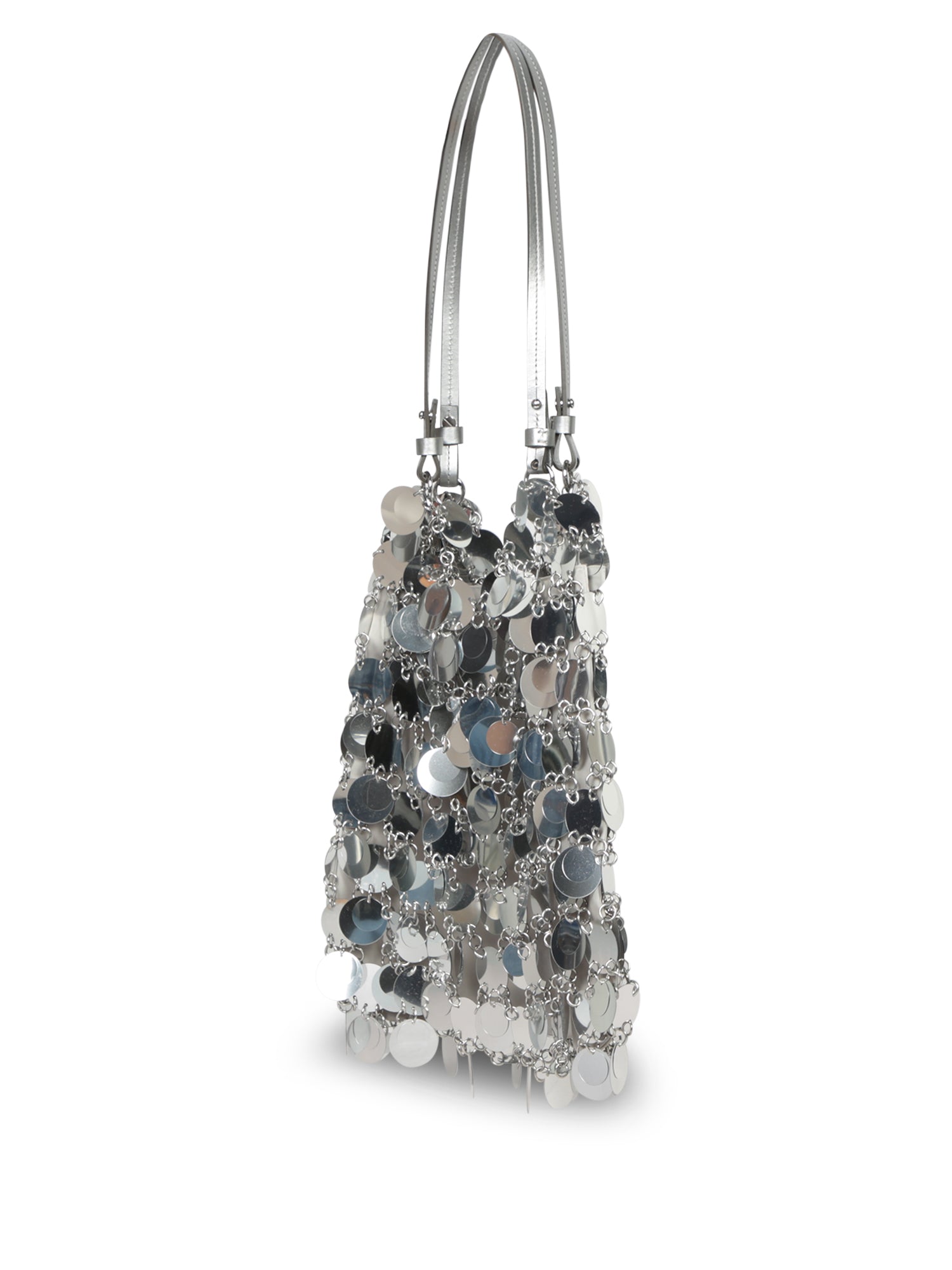 A bold creation by Paco Rabanne, this shoulder bag blends contemporary elegance with a playful edge. Perfect for exclusive evenings or as a standout piece in a sophisticated daytime outfit.