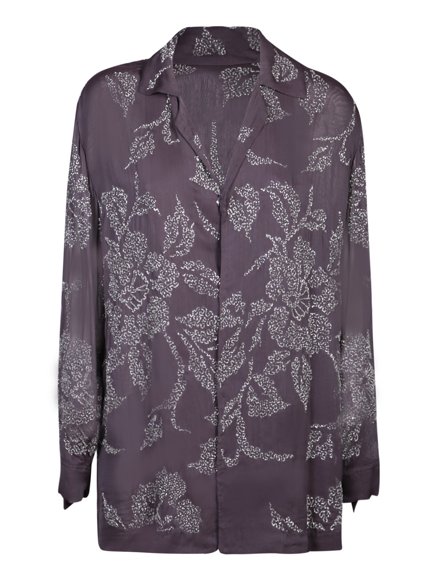 Viscose shirt with detailed embroidery, classic collar, and front button closure.