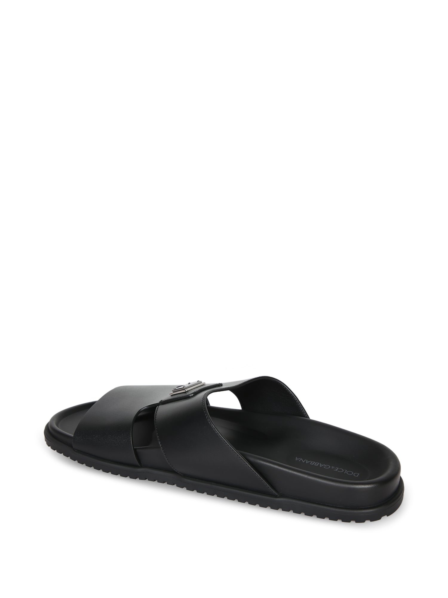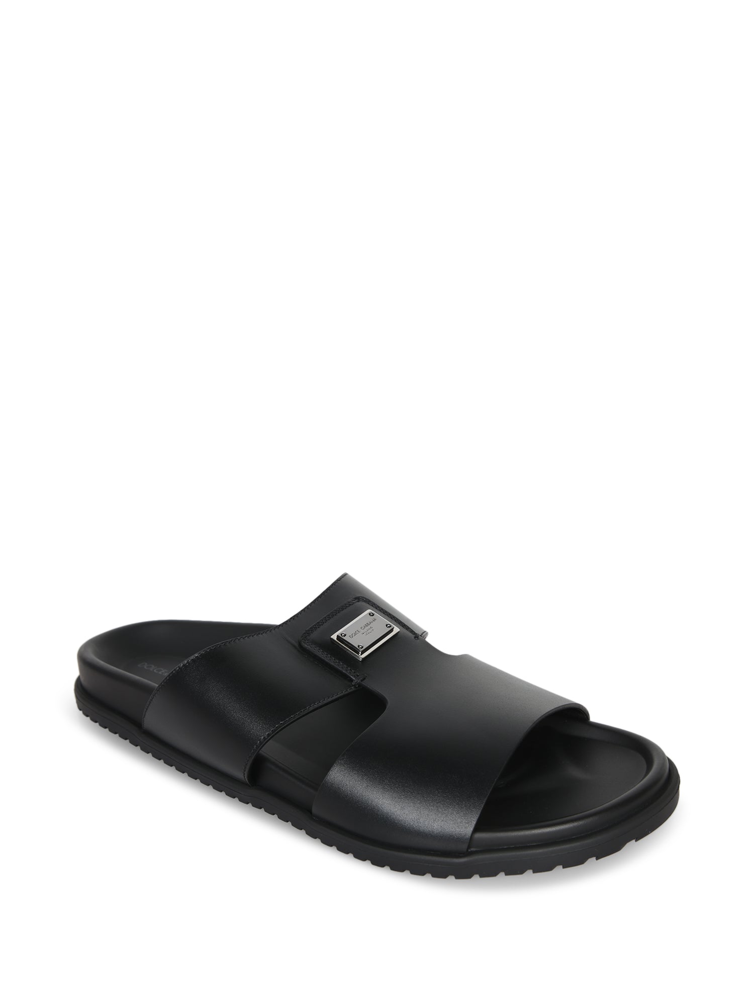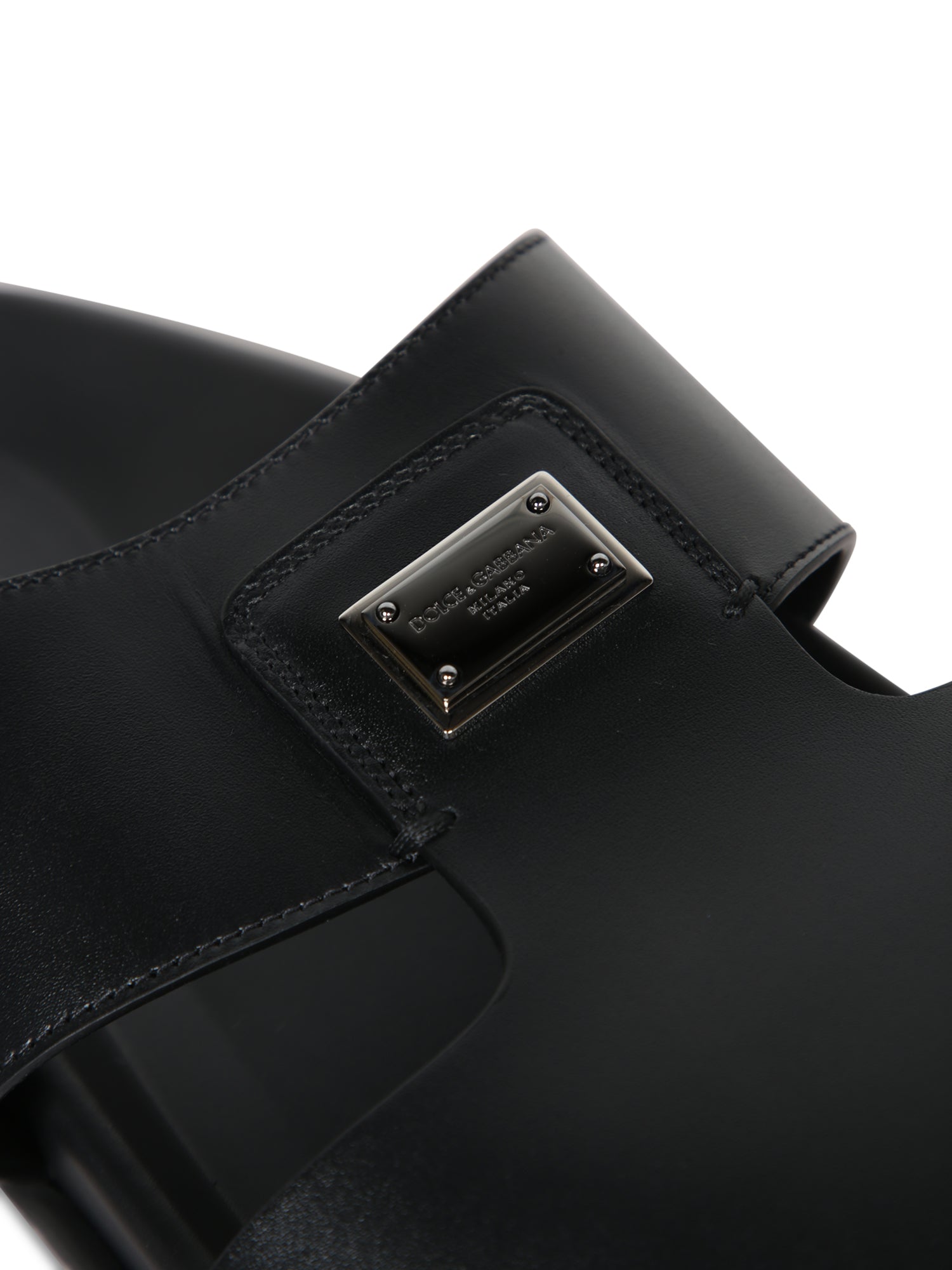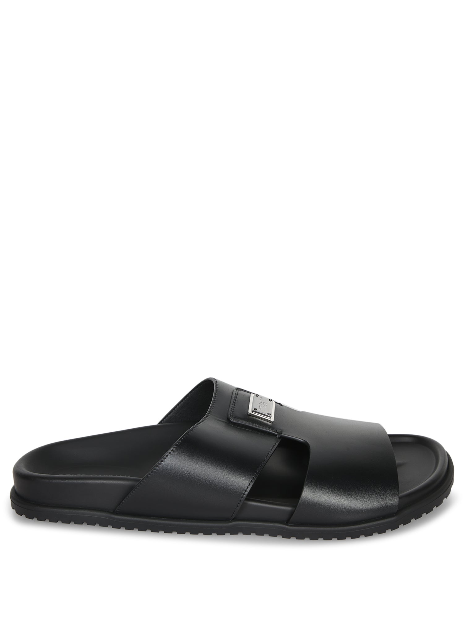 Smooth leather upper strap. Adjustable buckle closure. Non-slip rubber sole.