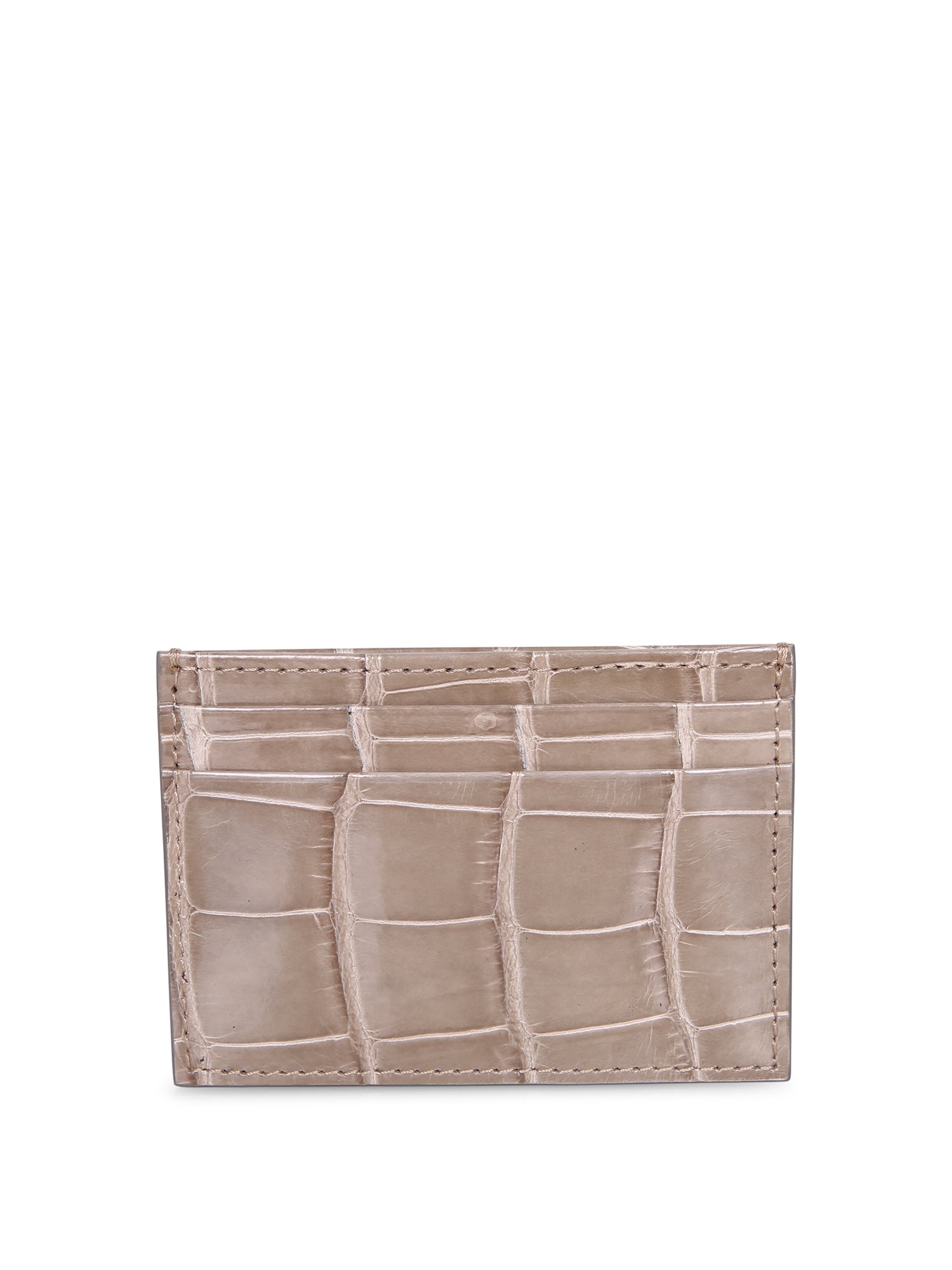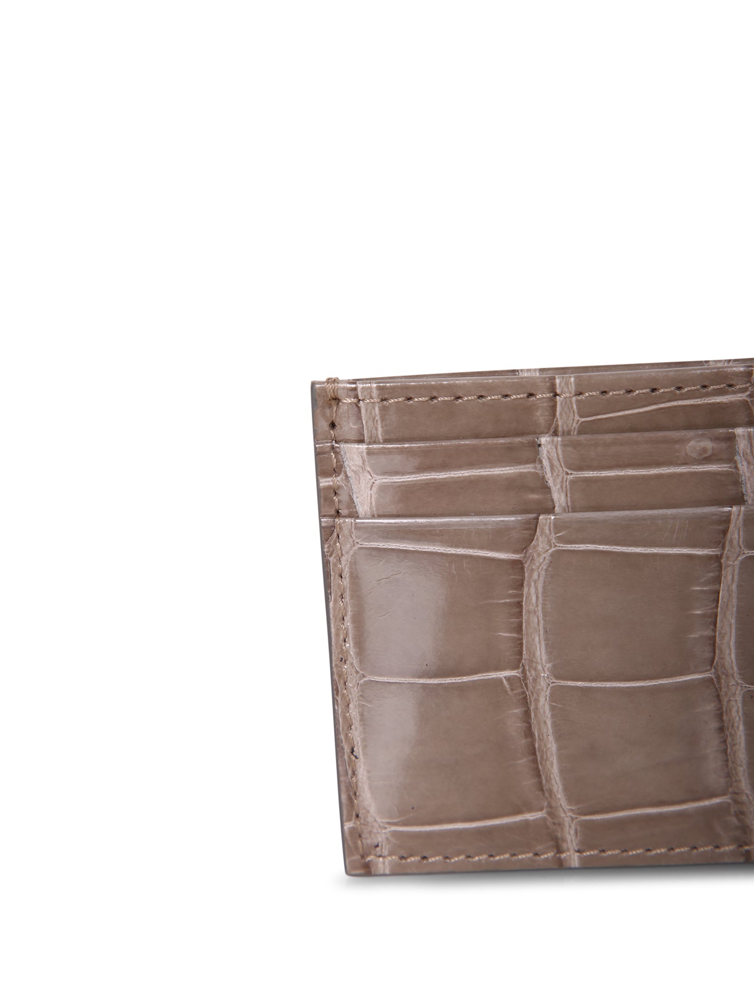 Card holder crafted from premium alligator leather. Features four card slots. Finished with precise stitching.