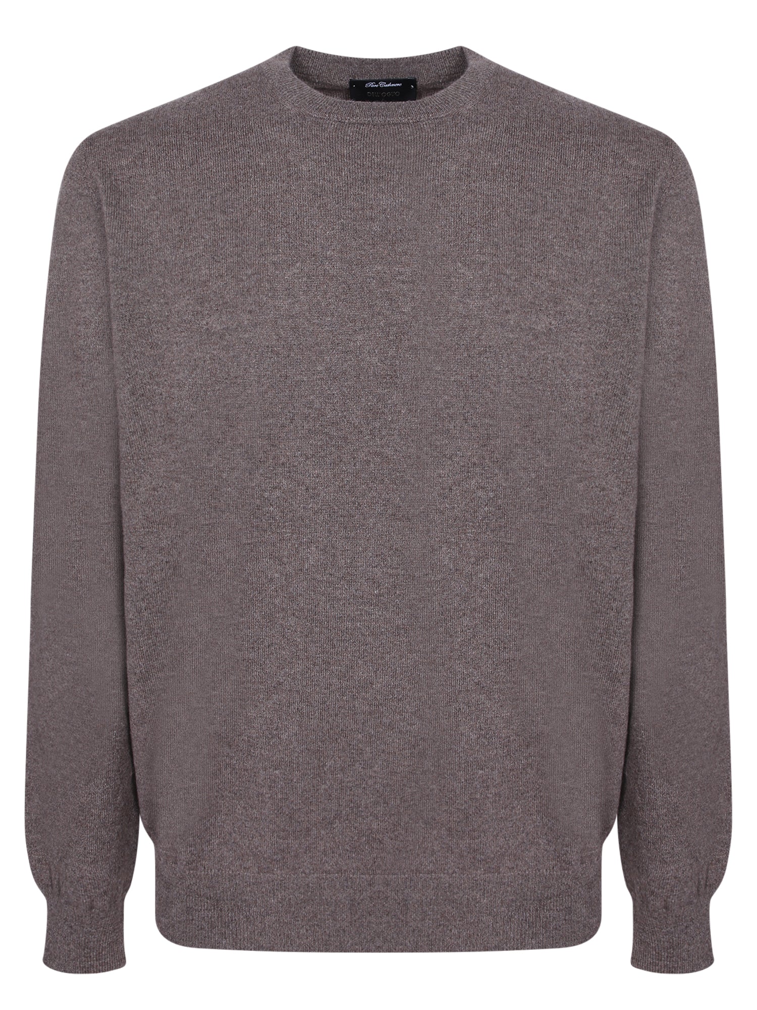 Crew neck cashmere sweater. Taupe color. Ribbed trim.