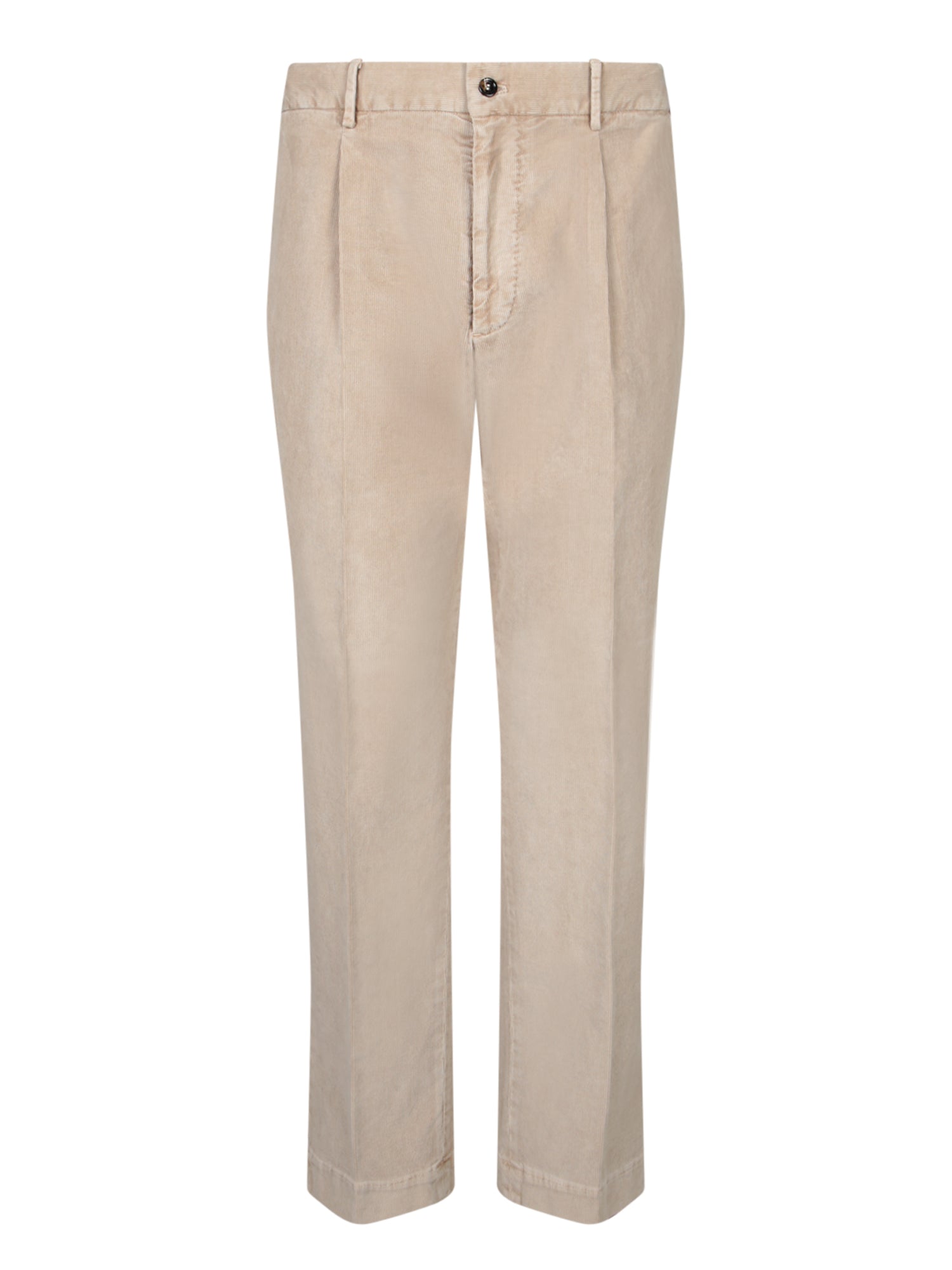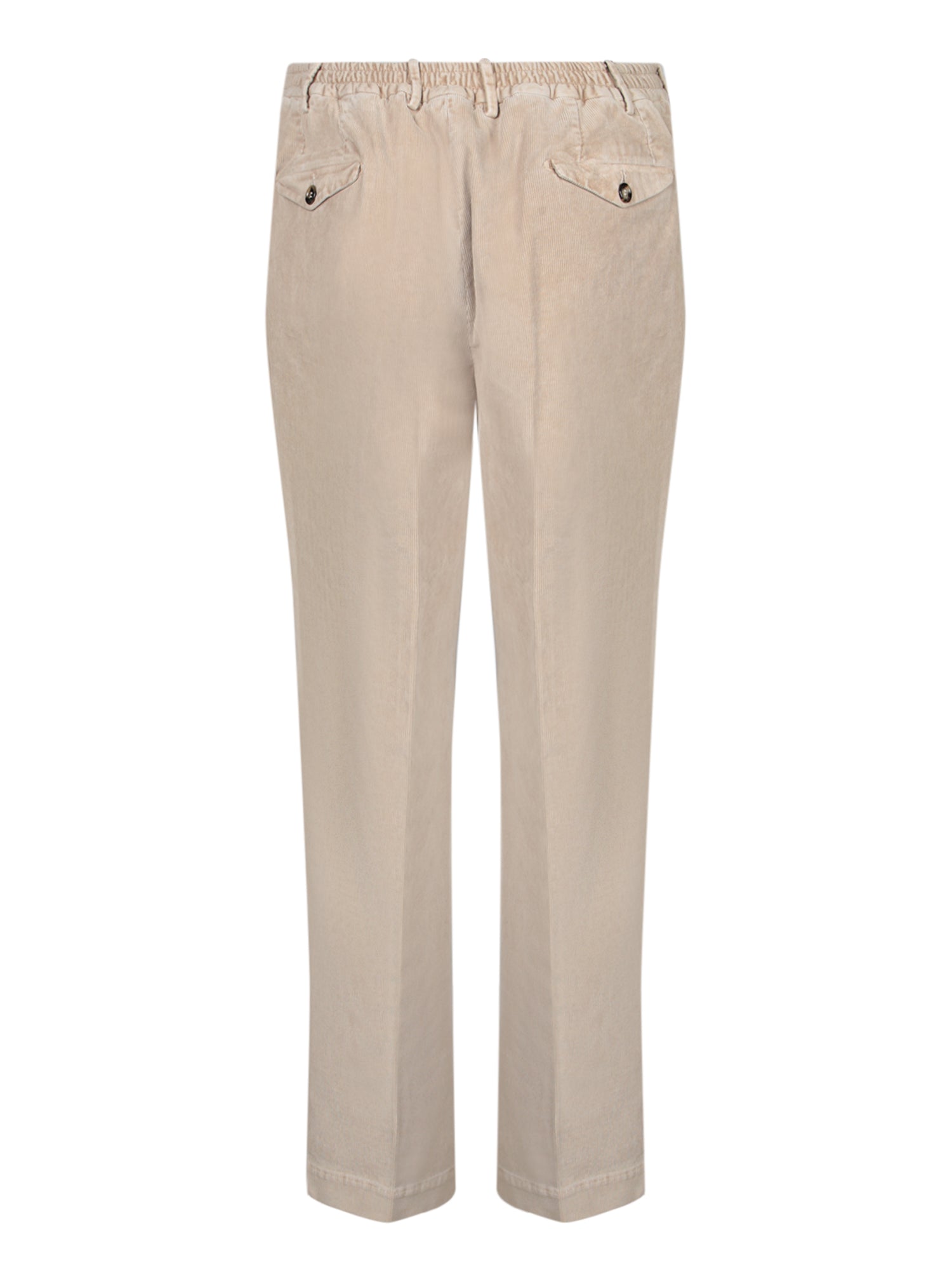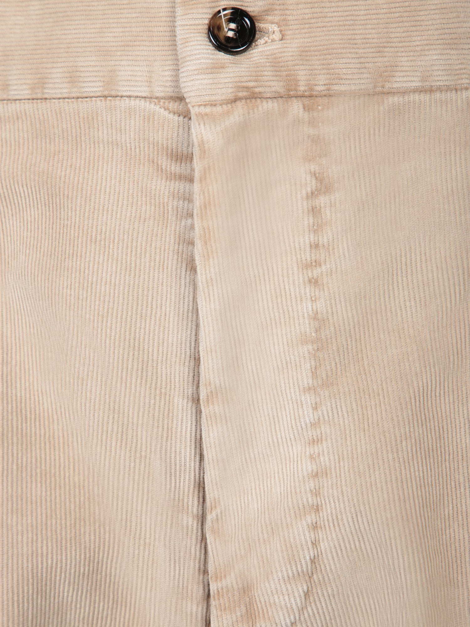 Corduroy pants. Zip and button closure. Side and back pockets.
