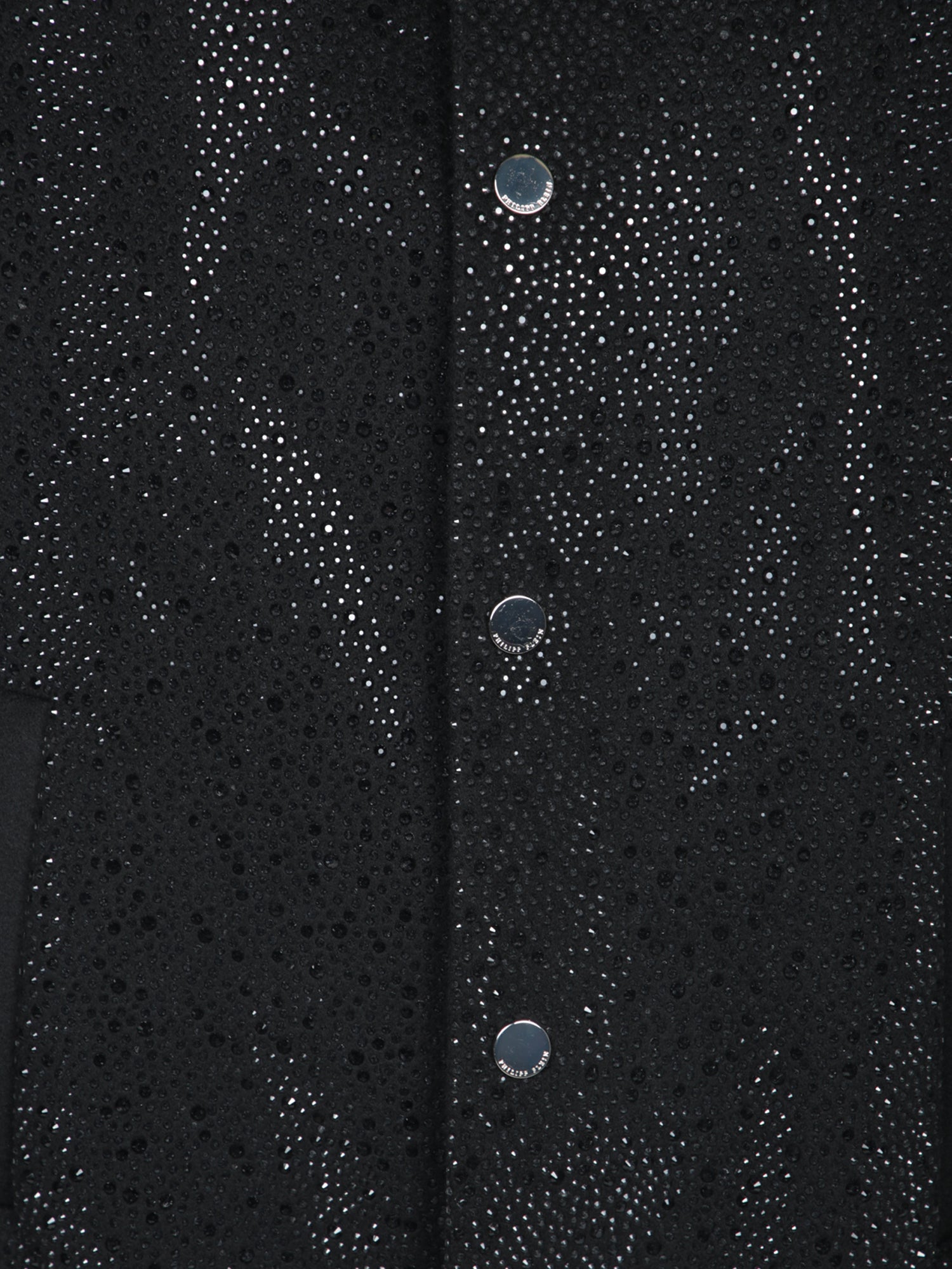 Bomber jacket adorned with crystals. Snap button front closure. Side pockets.