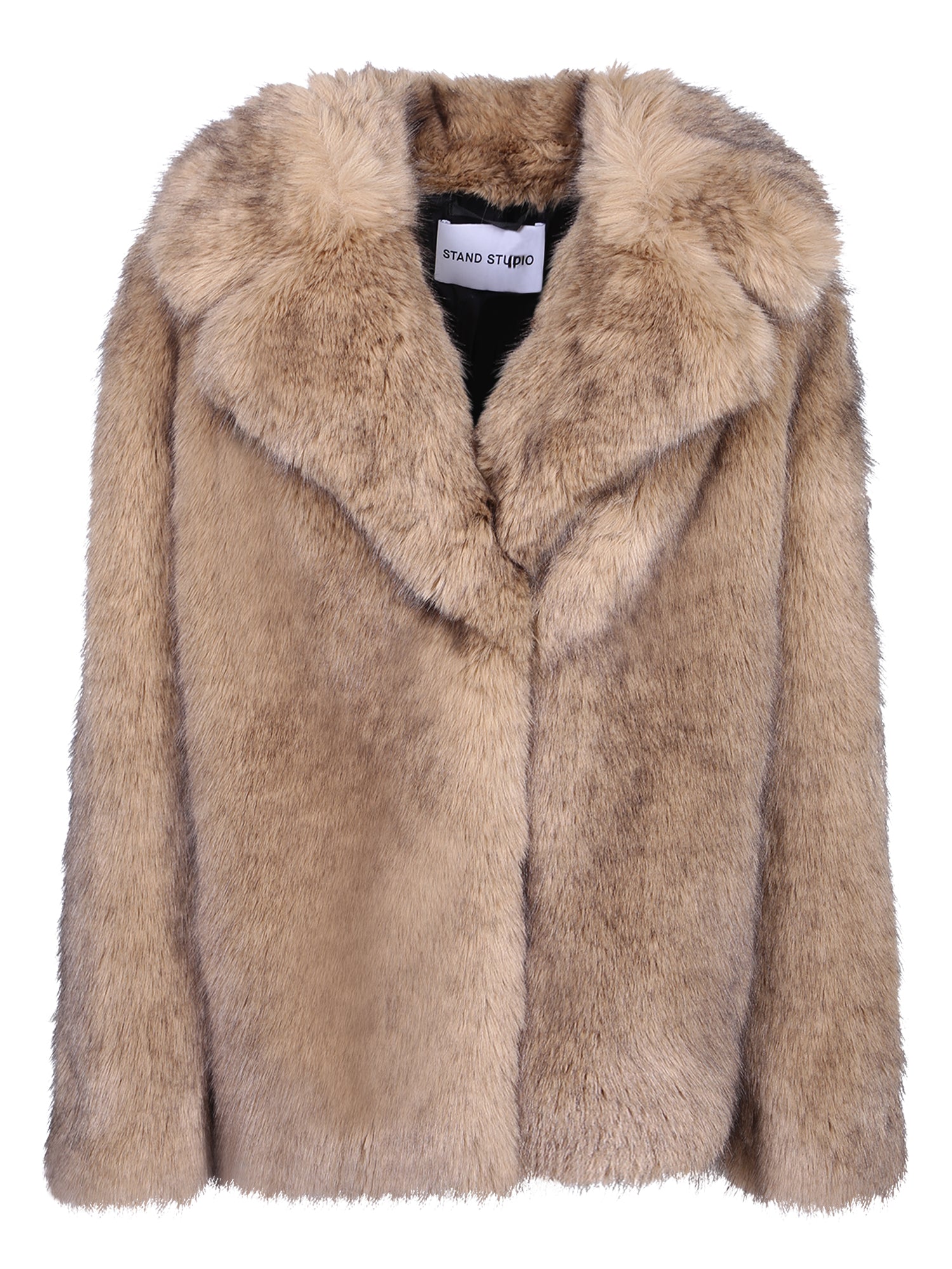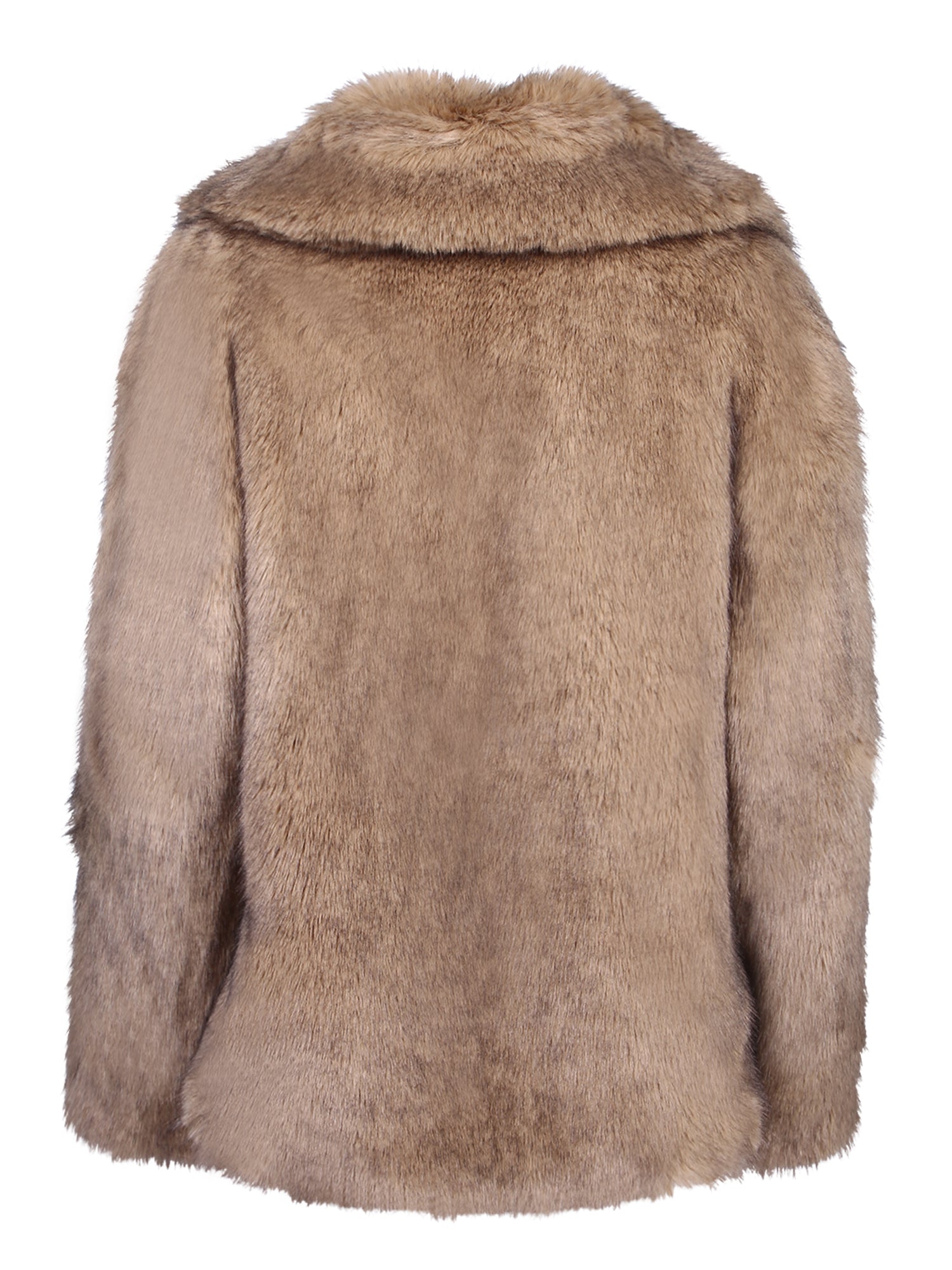 Faux fur jacket with wide fur collar. Long sleeves and side pockets.
