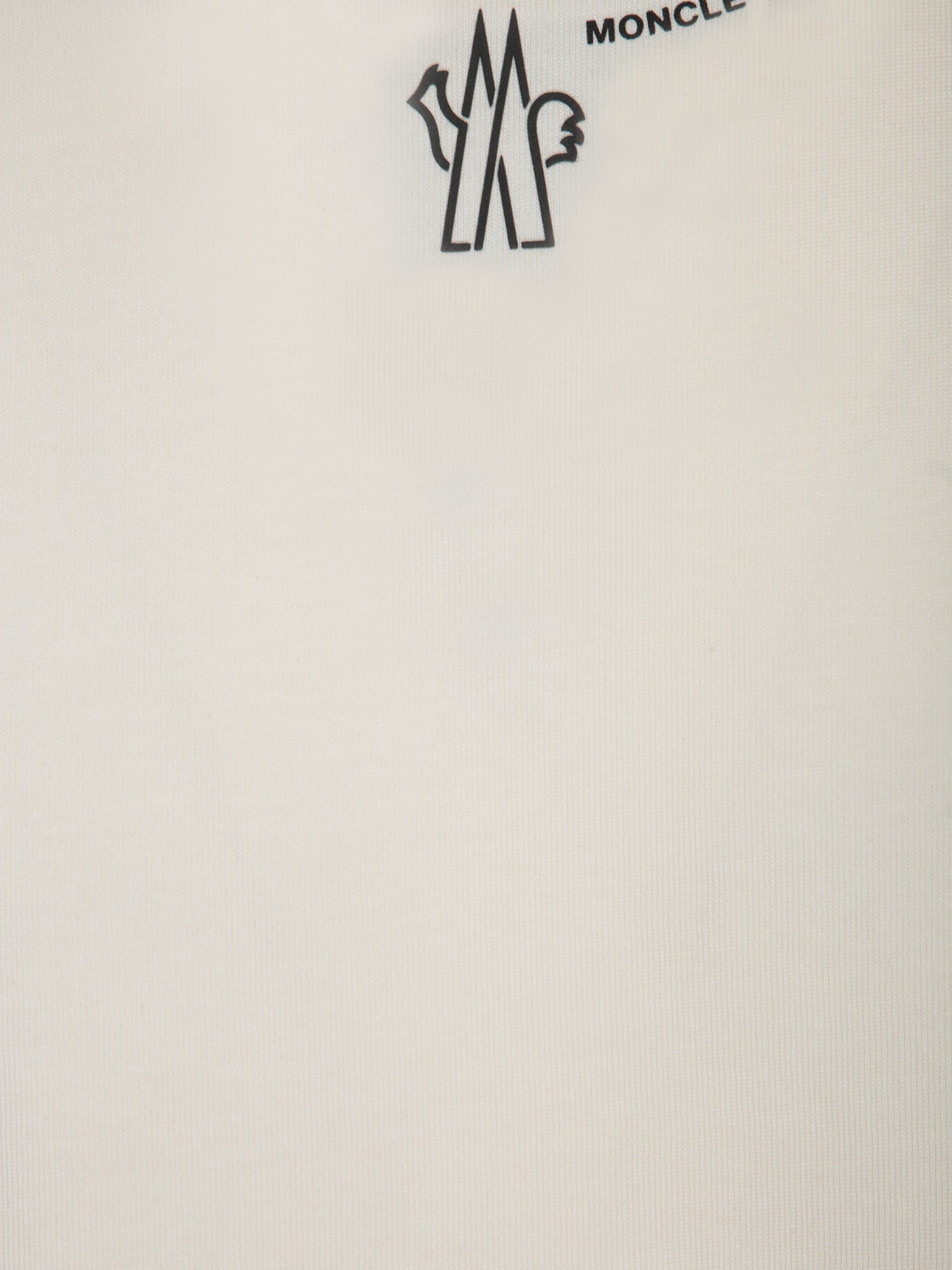 Crew neck with striped detail. Short sleeves. Logo appliqué on the chest.