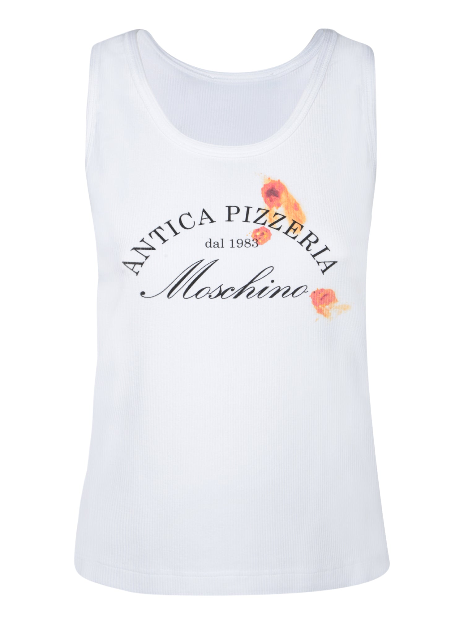 Embrace the iconic Moschino style with this white cotton top, featuring an eye-catching logo print and a comfortable design perfect for a casual-chic look.