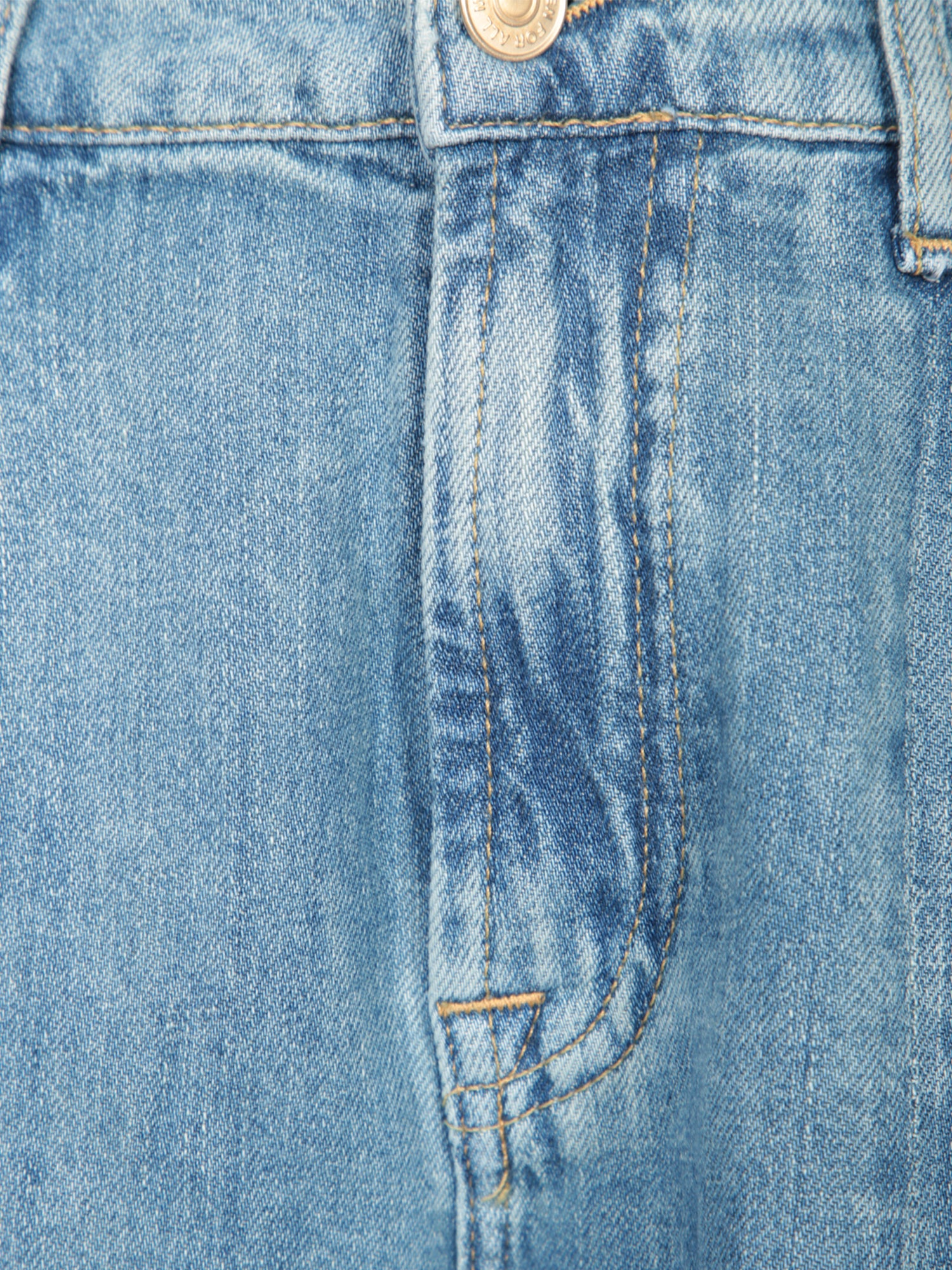 High-waisted jeans with a wide cut. Five-pocket model. Front slit on both legs.