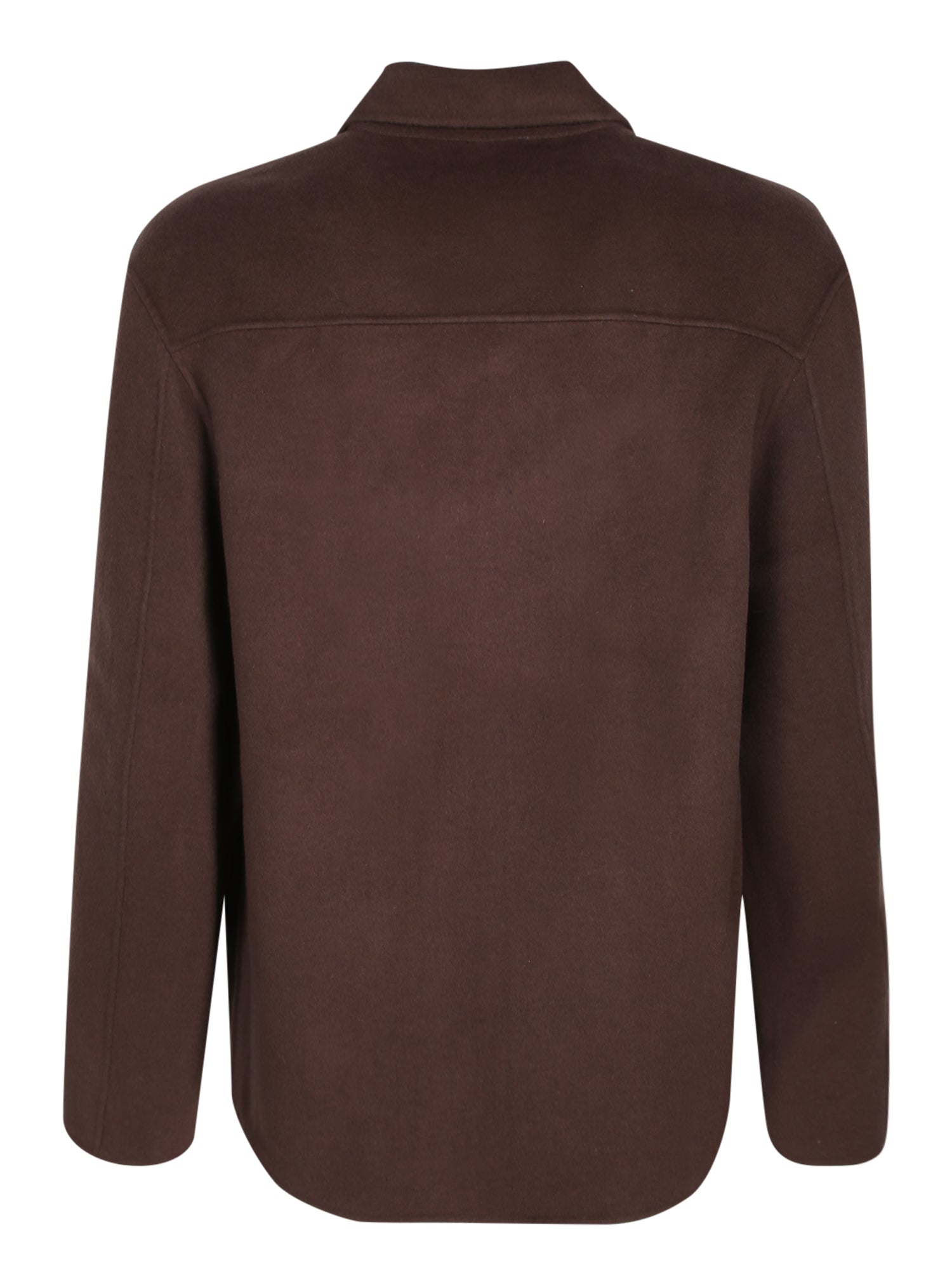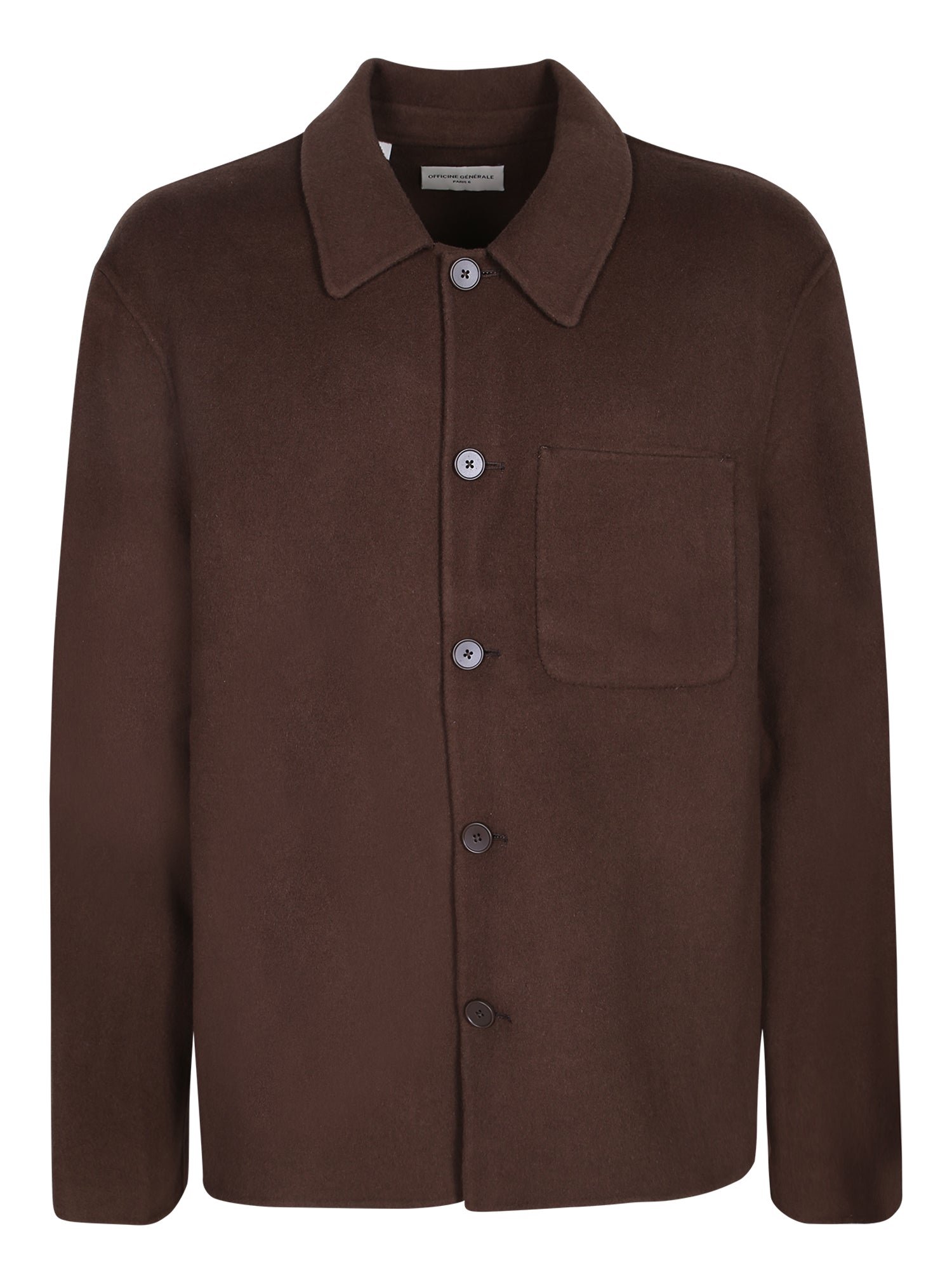 Wool overshirt with button-front closure. Features a chest pocket and classic collar.