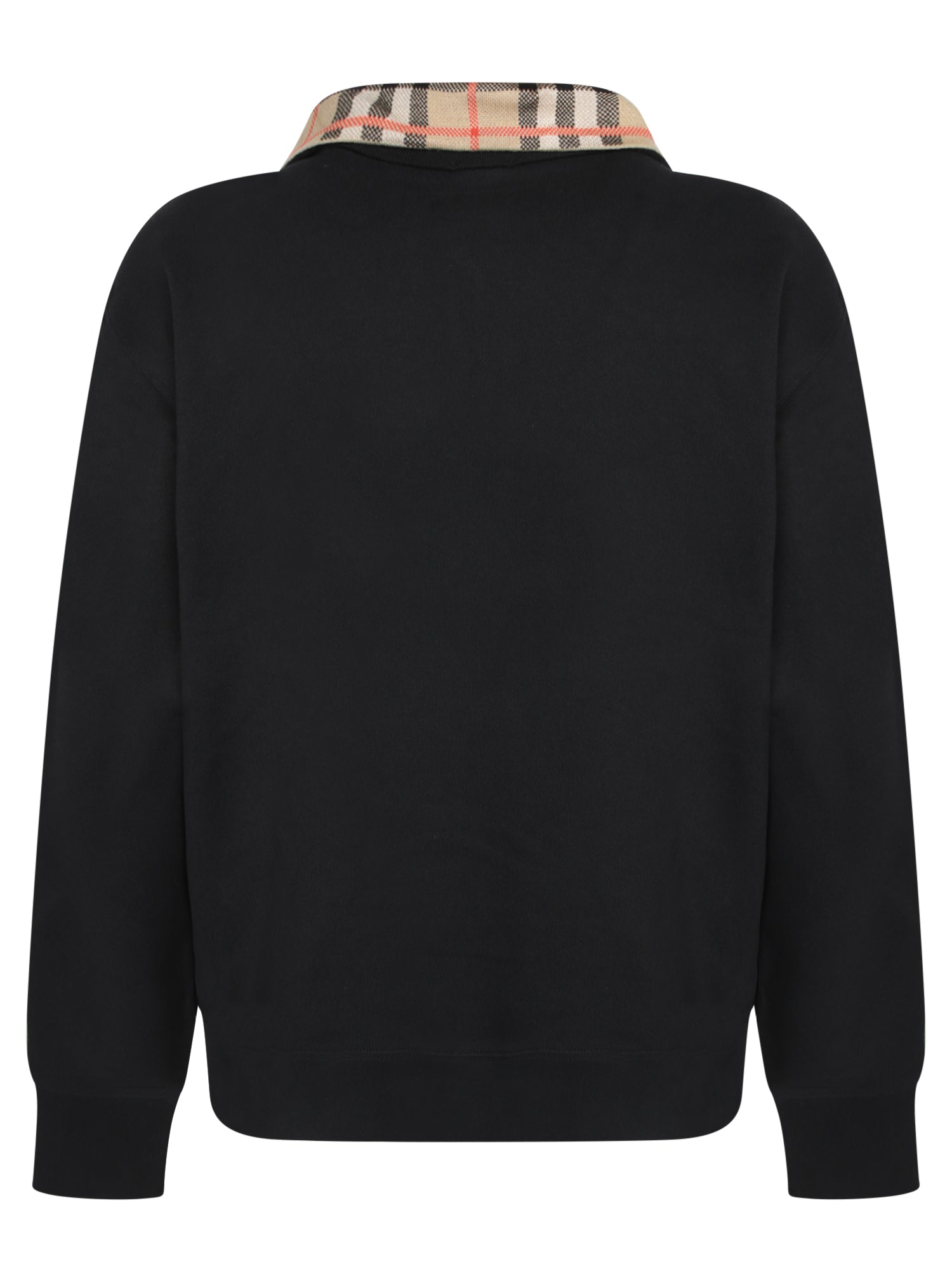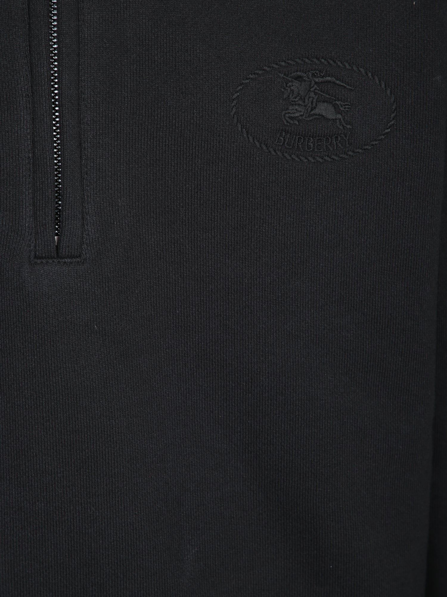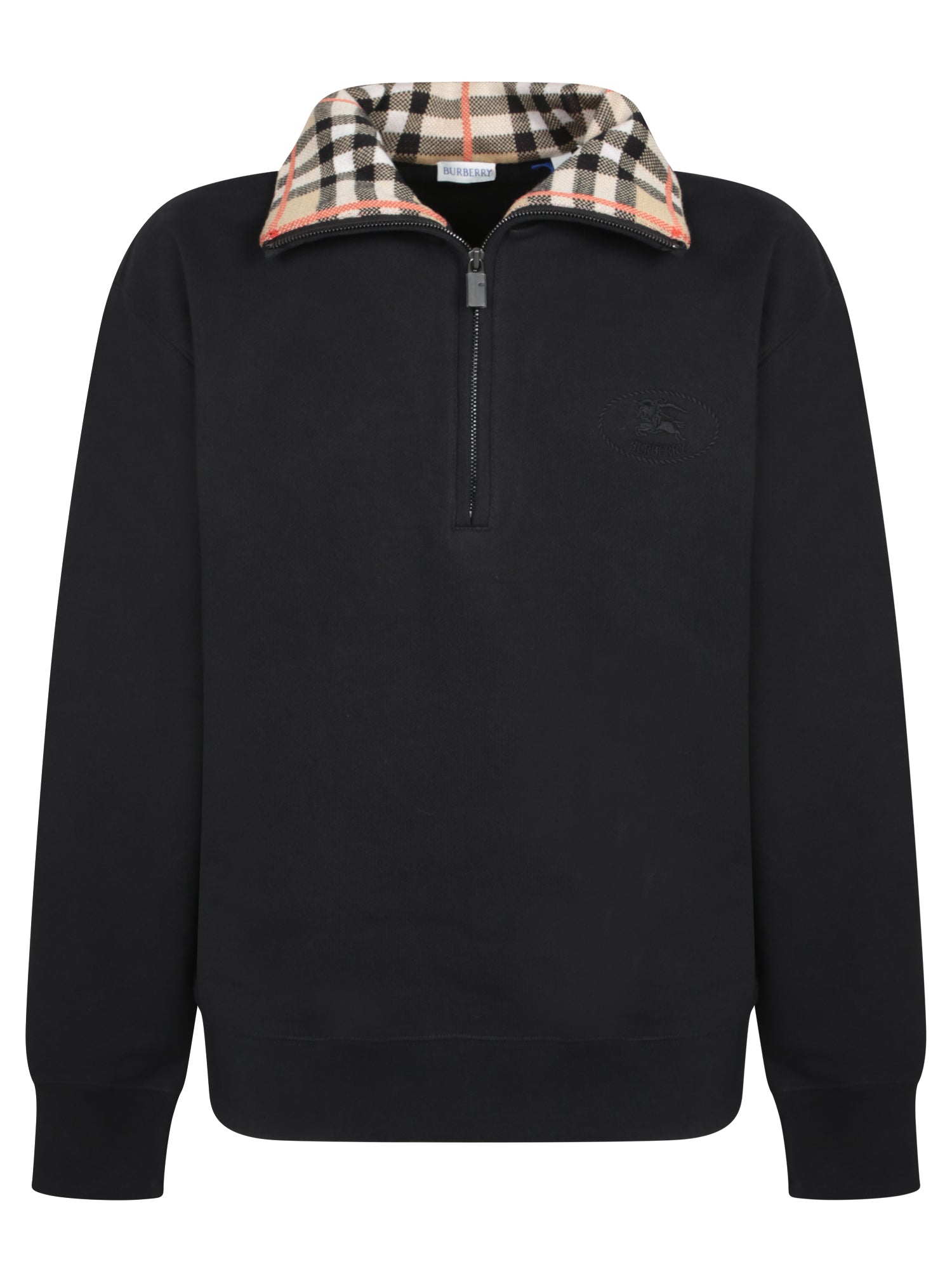 Polo collar with check details, half-length zipper, embroidered logo on the chest.