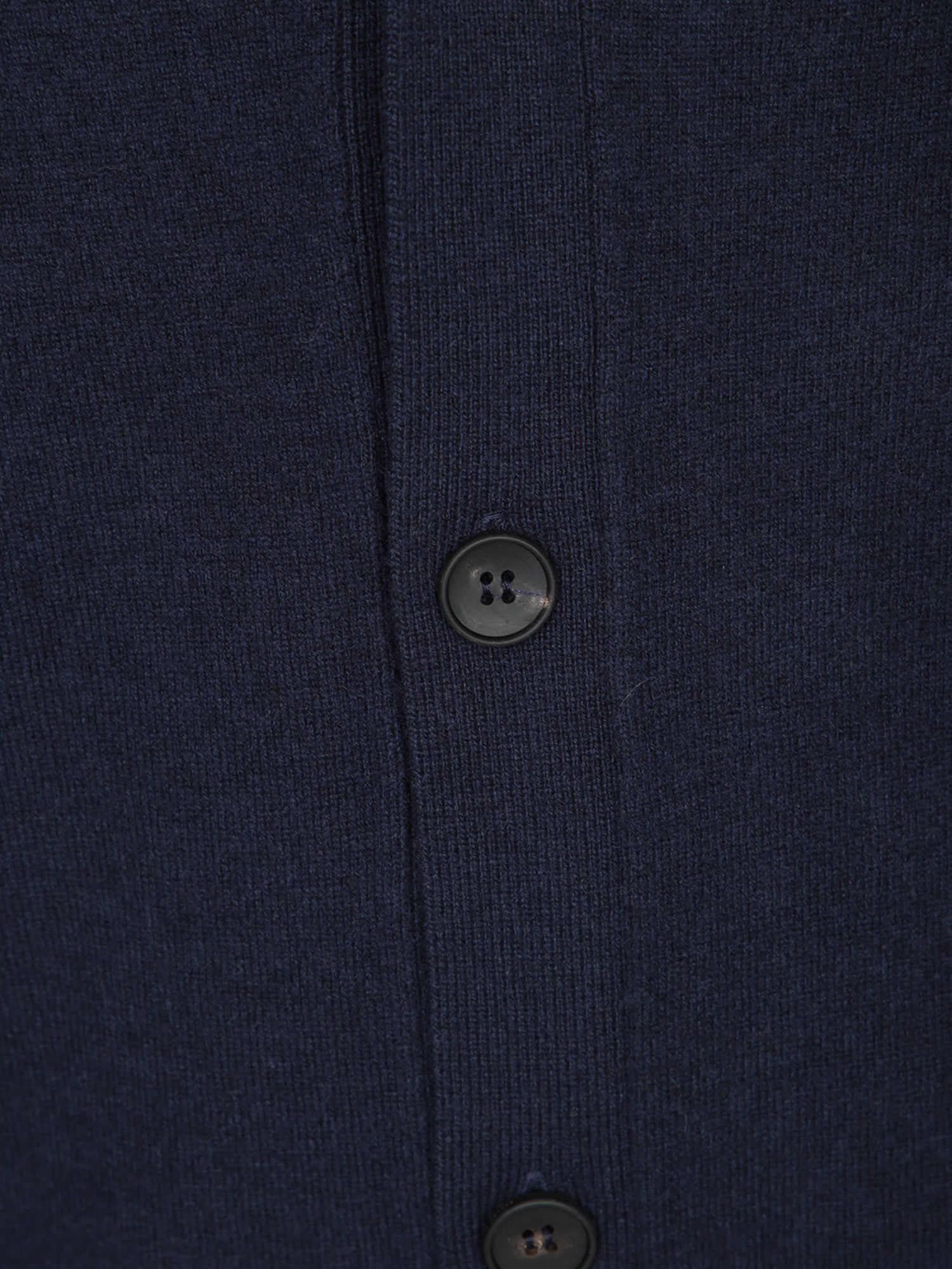 V-neck cardigan. Front button closure. Ribbed cuffs and hem.